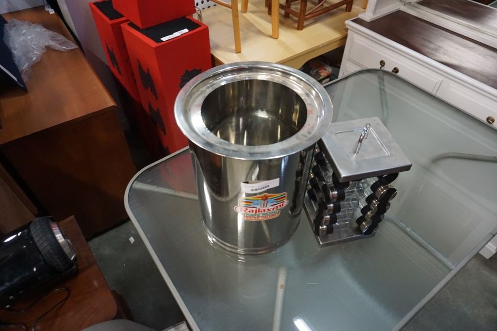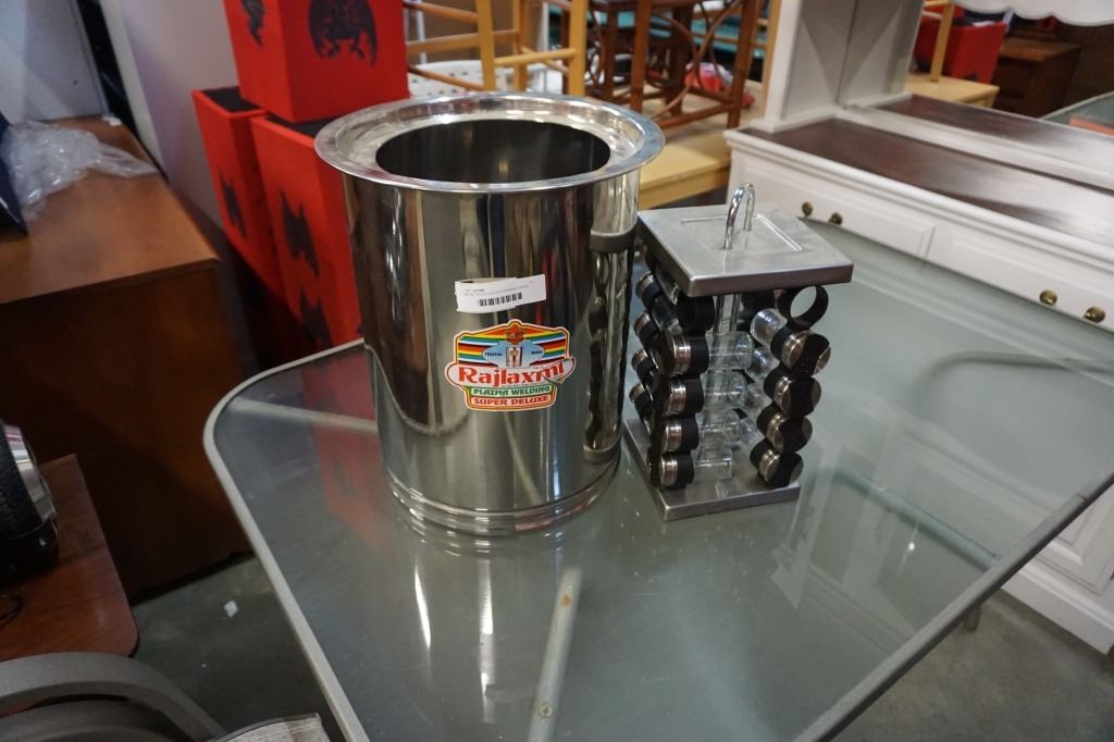 METAL WASTE BIN AND SPINNING SPICE RACK