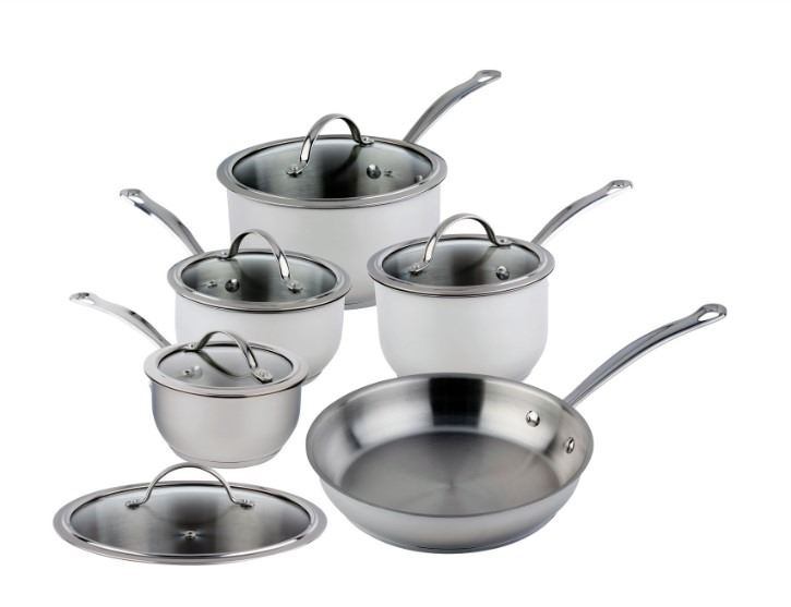 MEYER NOUVELLE 10 PIECE COOKWARE SET - STAINLESS STEEL, RETAIL $599