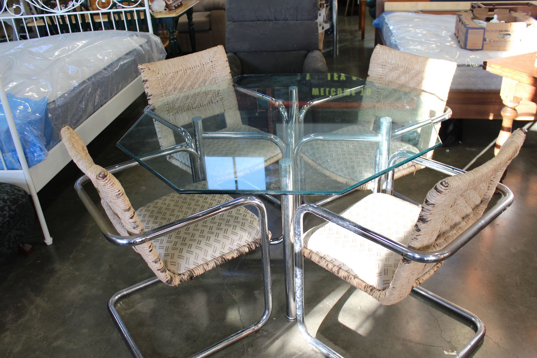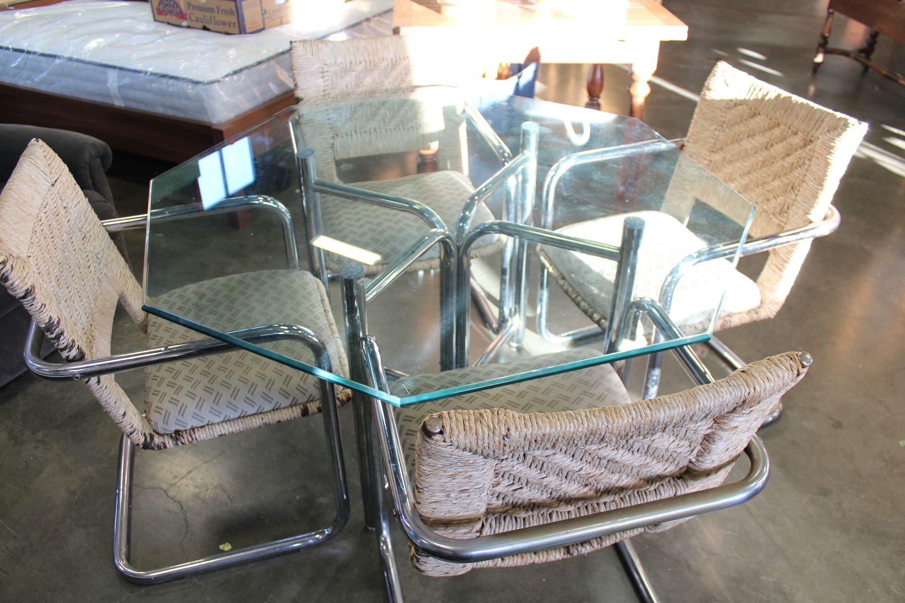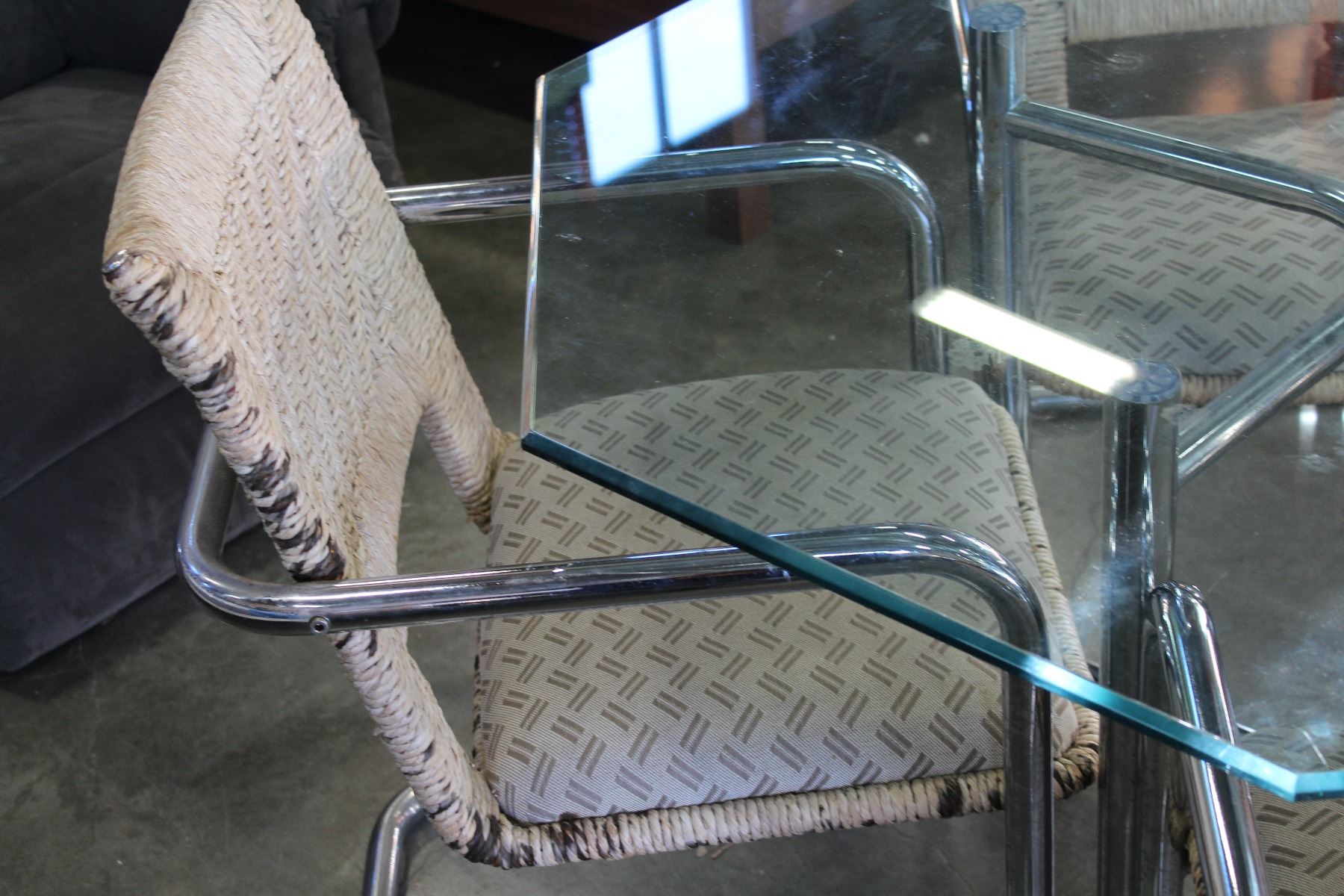 MID CENTURY MODERN CHROME TABLE WITH GLASS TOP AND 4 CHAIRS