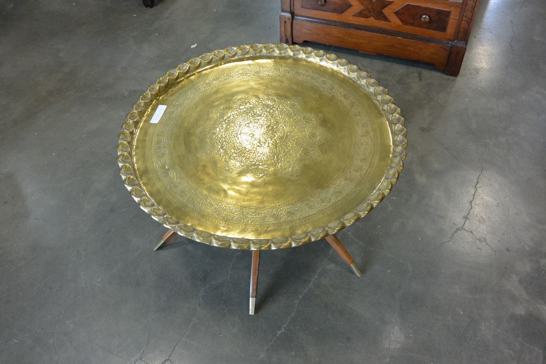 MID CENTURY MODERN TEAK AND BRASS SPIDERLEG COFFEE TABLE