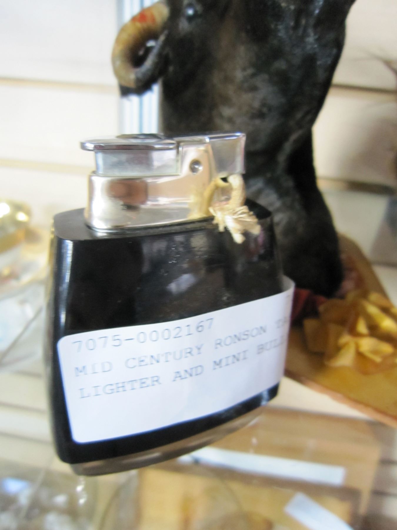 MID CENTURY RONSON TABLE LIGHTER AND MINI BULLHEAD