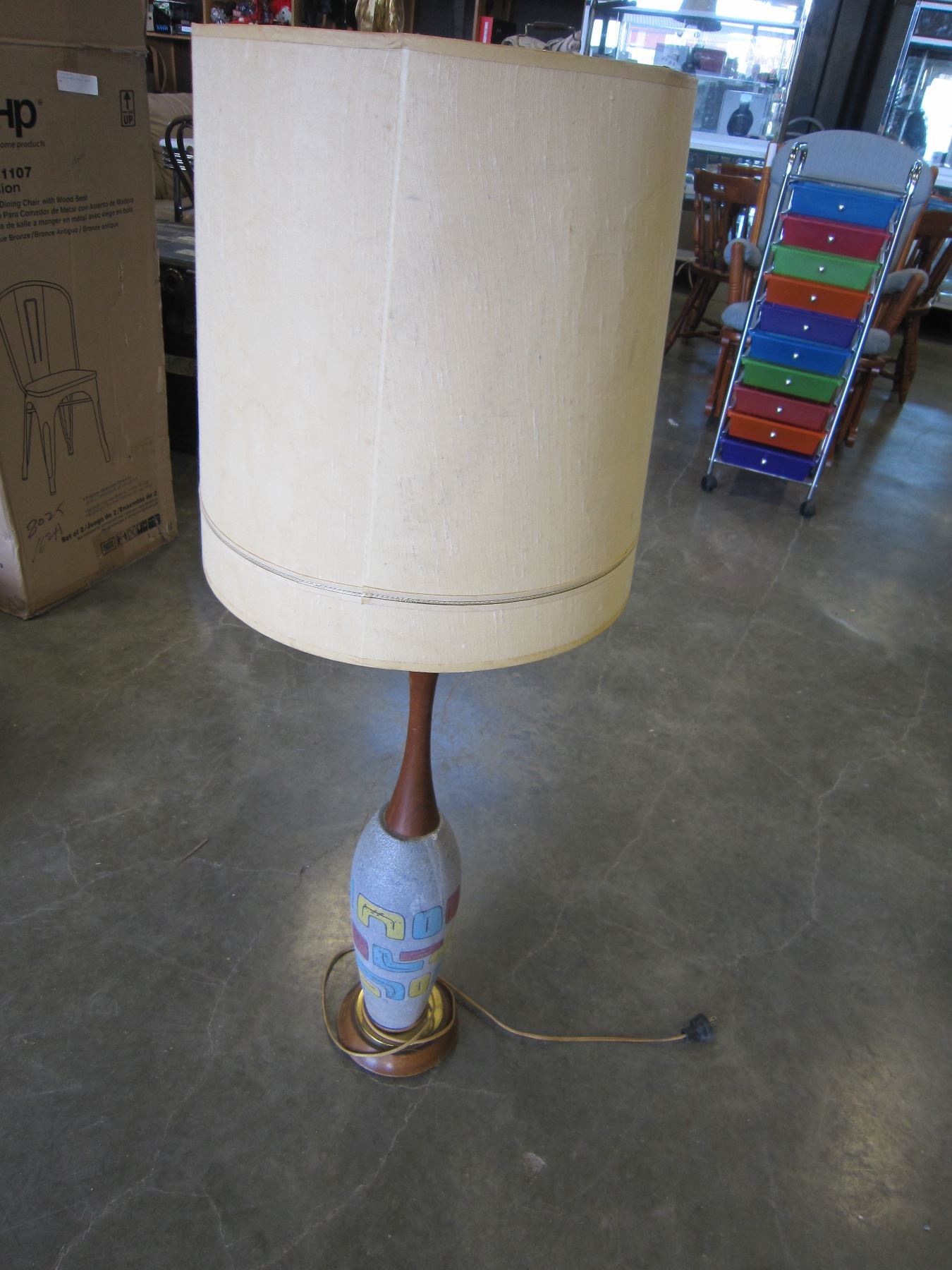 MID CENTURY TEAK LAMP W/ SHADE EMIL BERTALYZI STYLE
