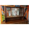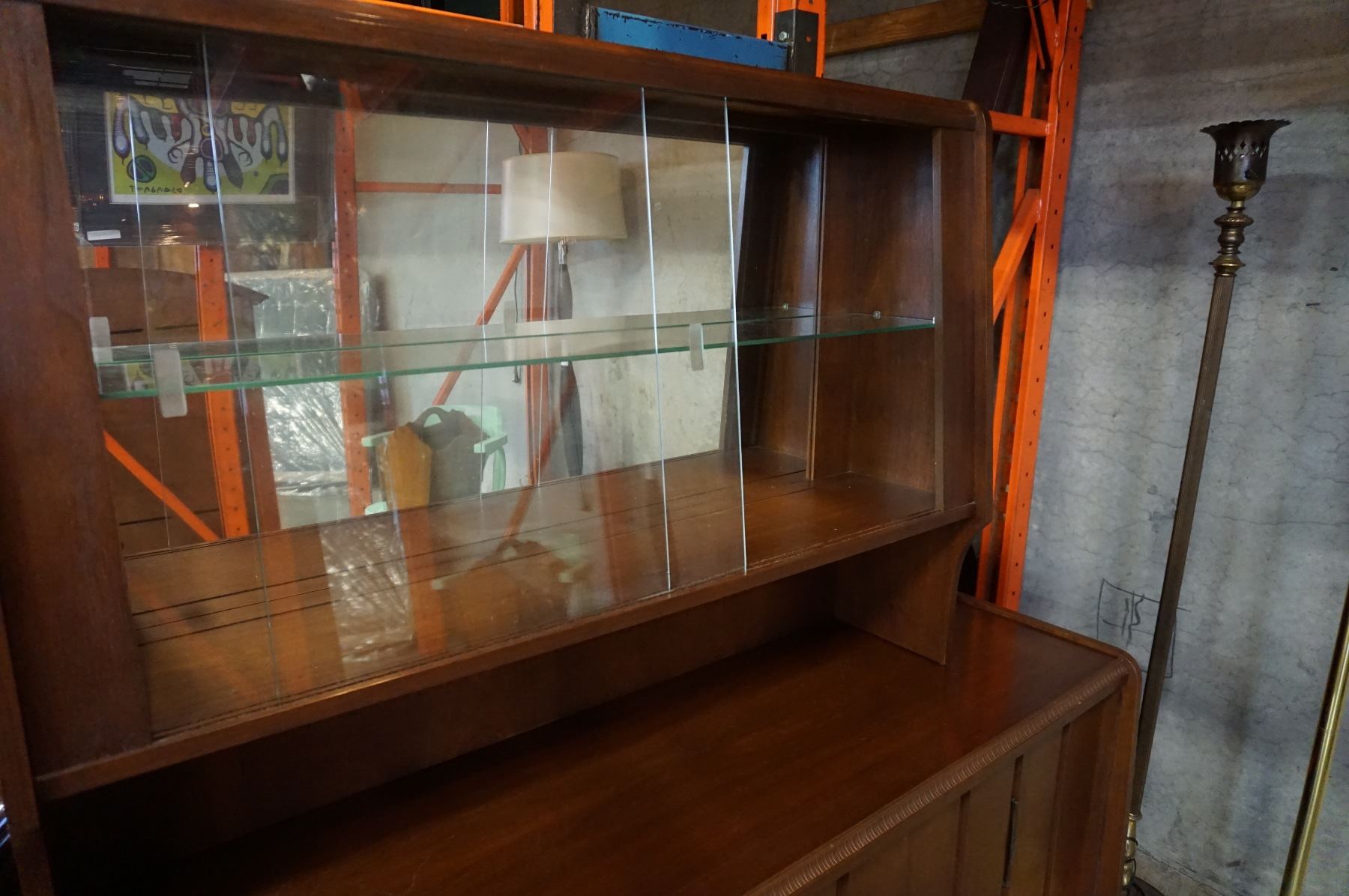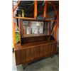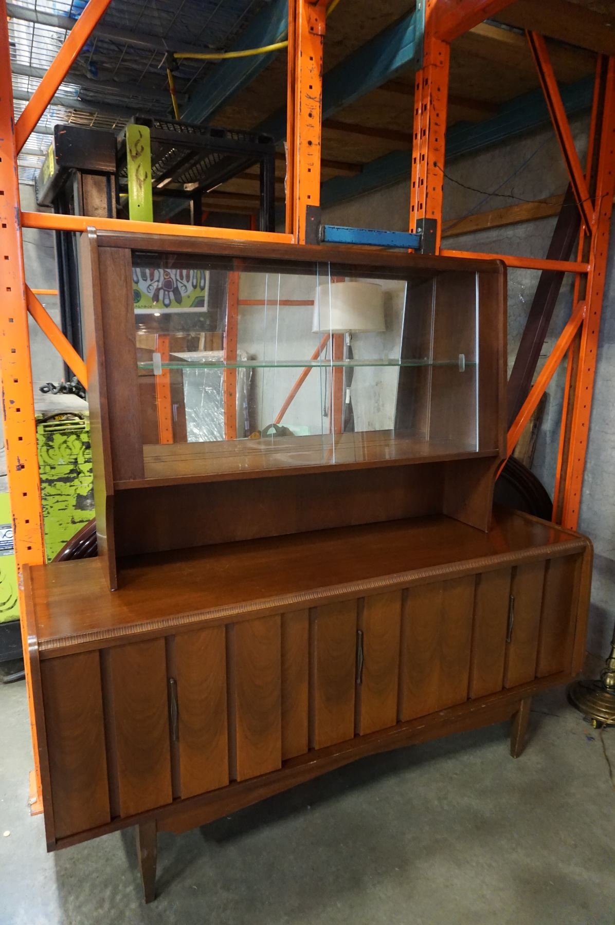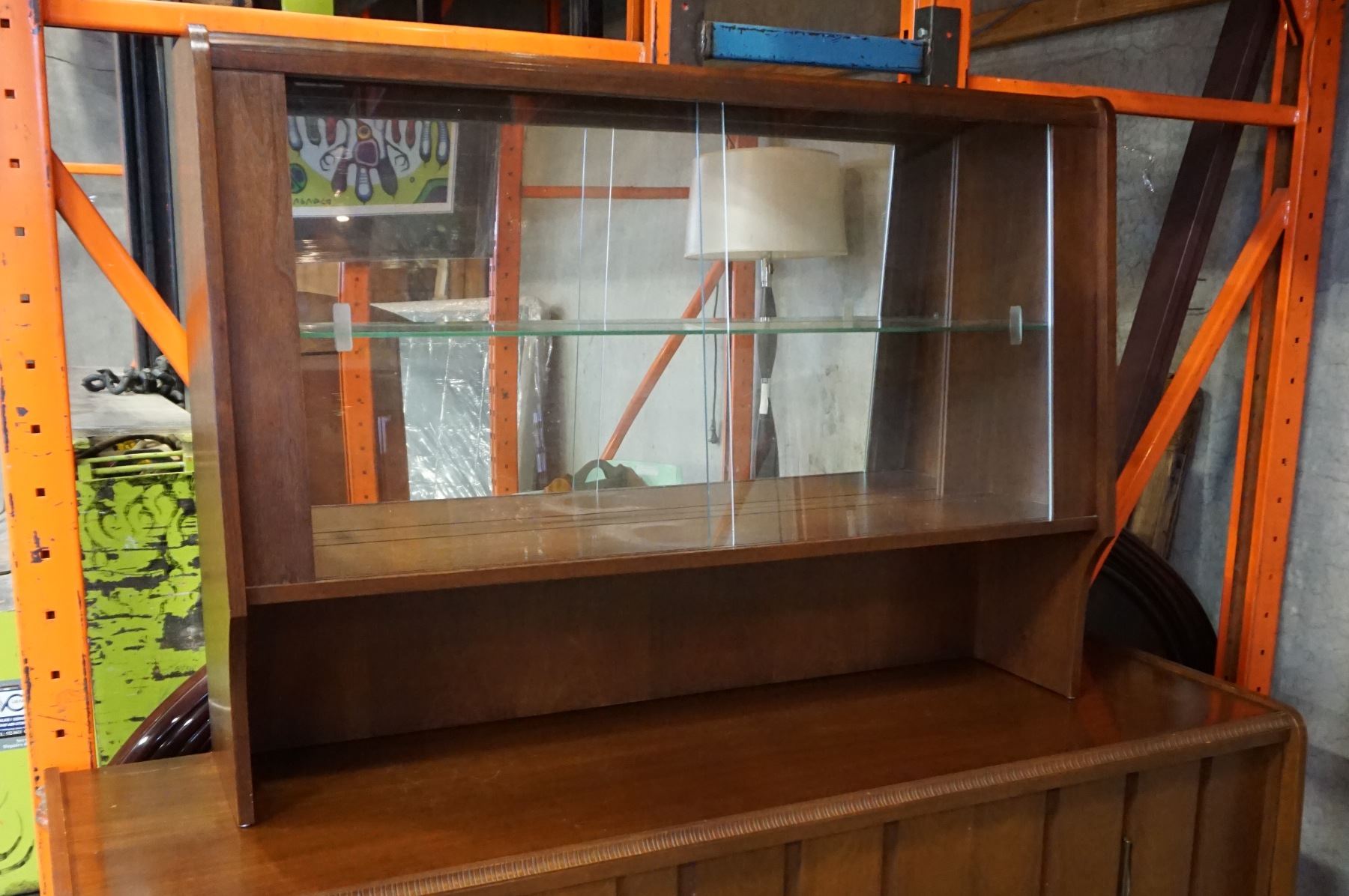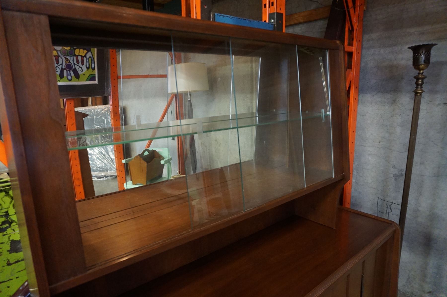 MID CENTURY WALNUT HUTCH AND SERVER W/ SLIDING GLASS DOORS