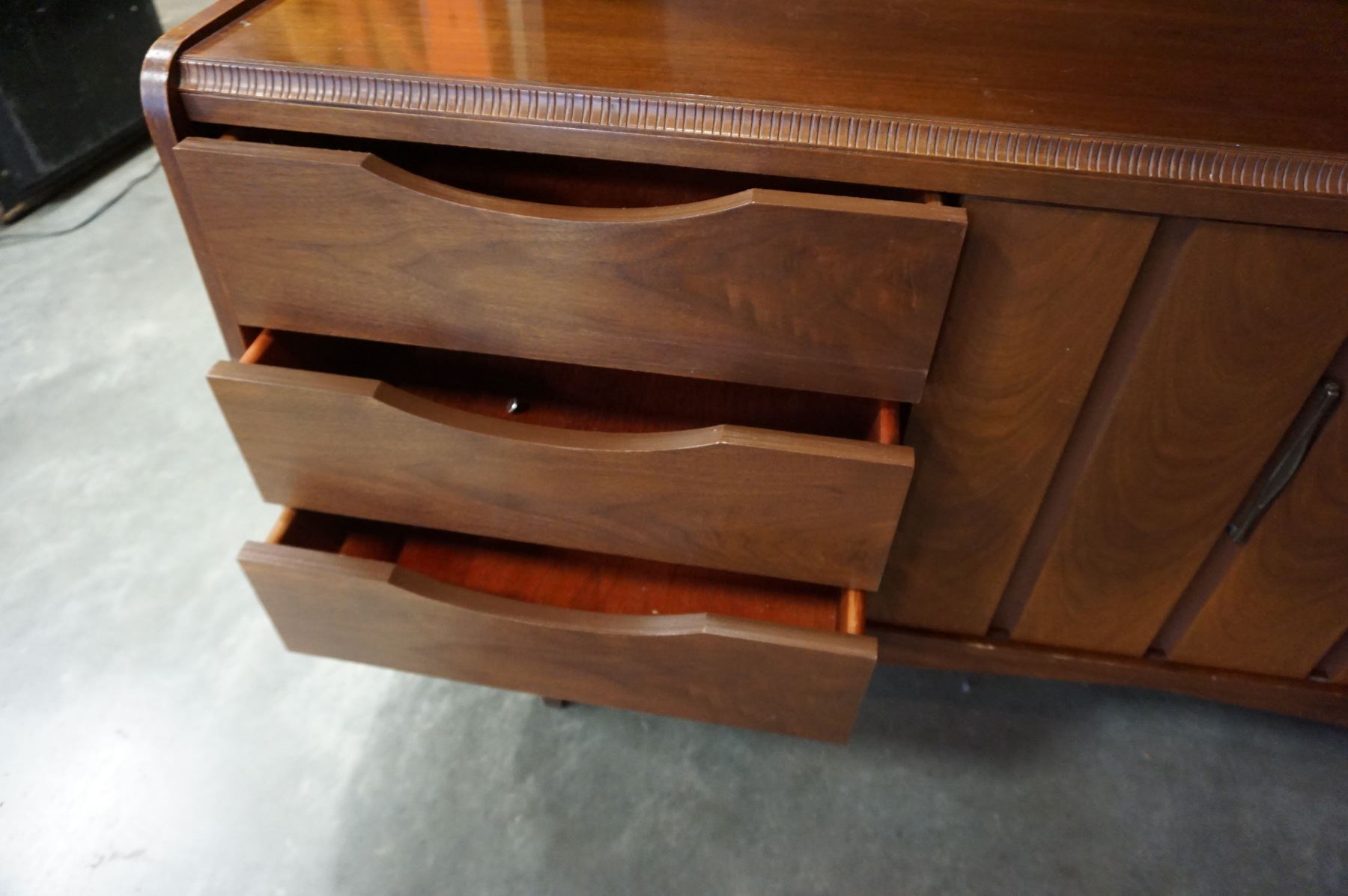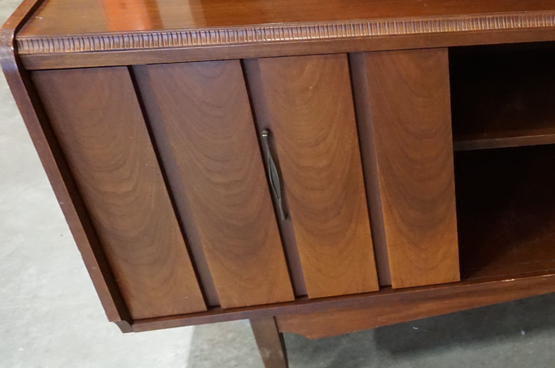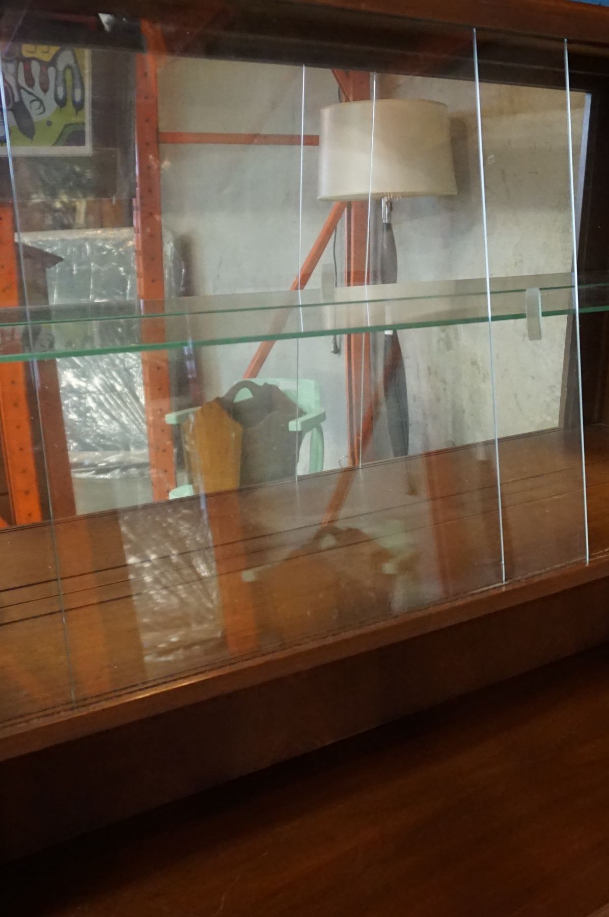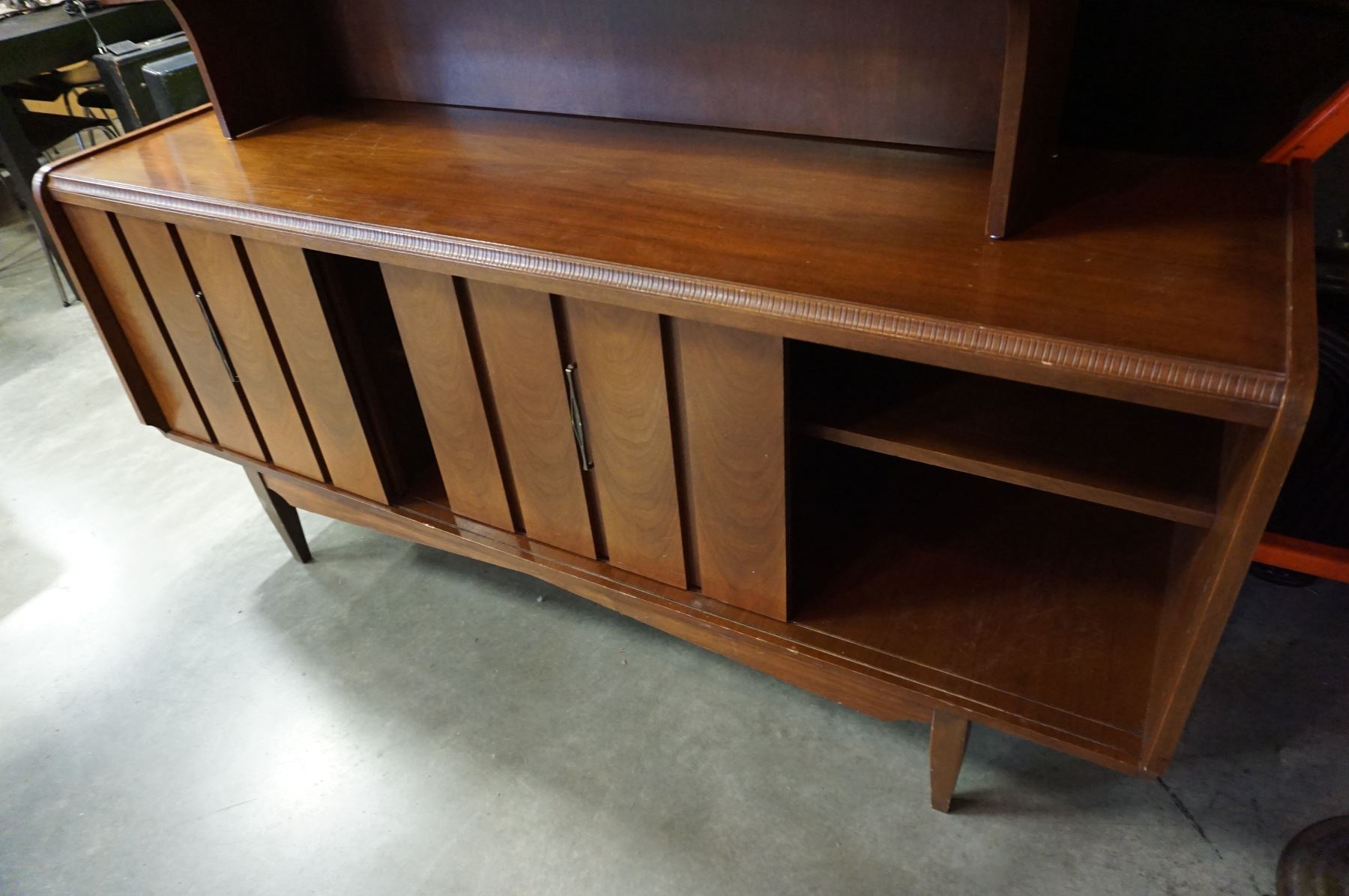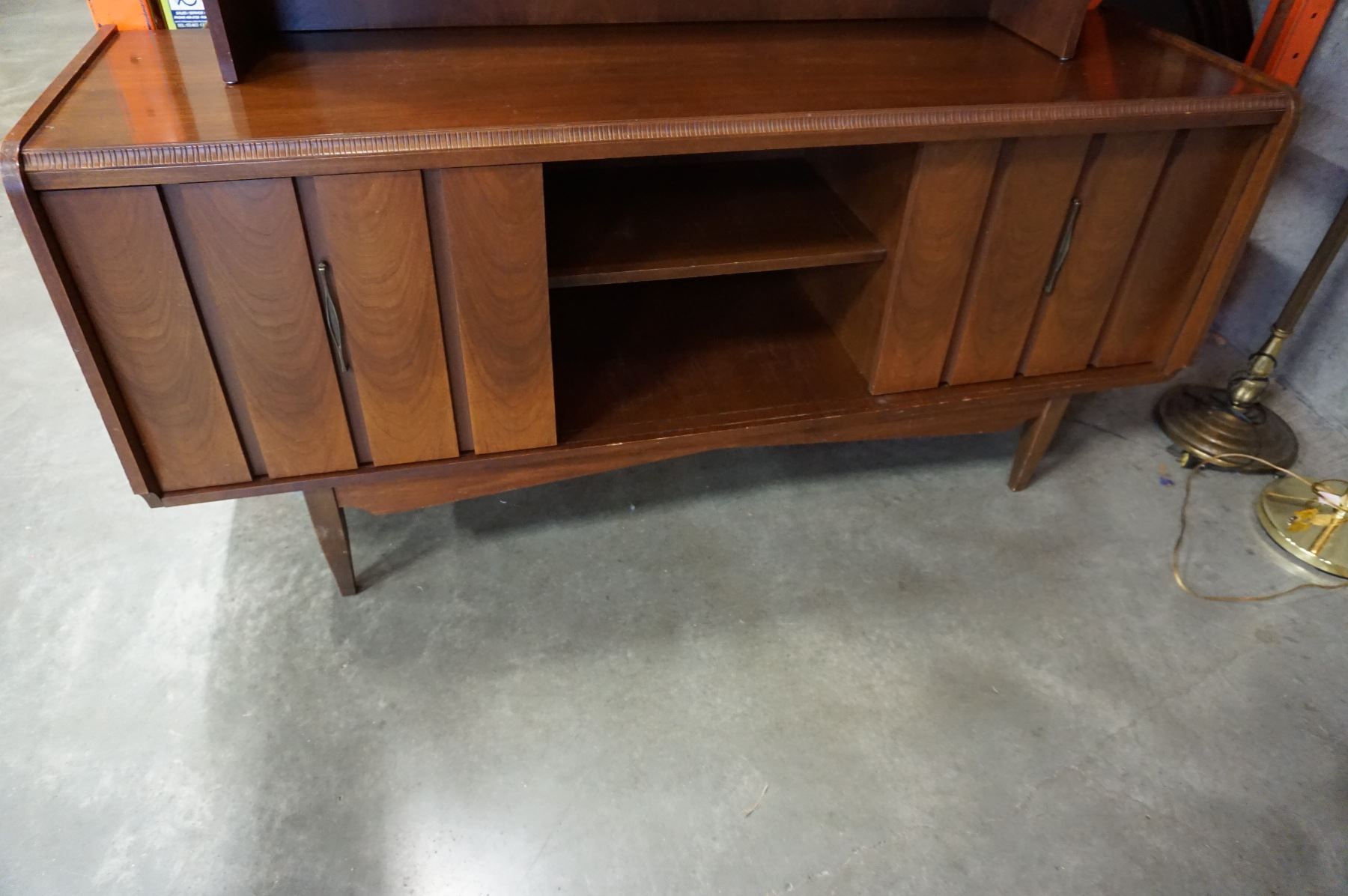 MID CENTURY WALNUT HUTCH AND SERVER W/ SLIDING GLASS DOORS