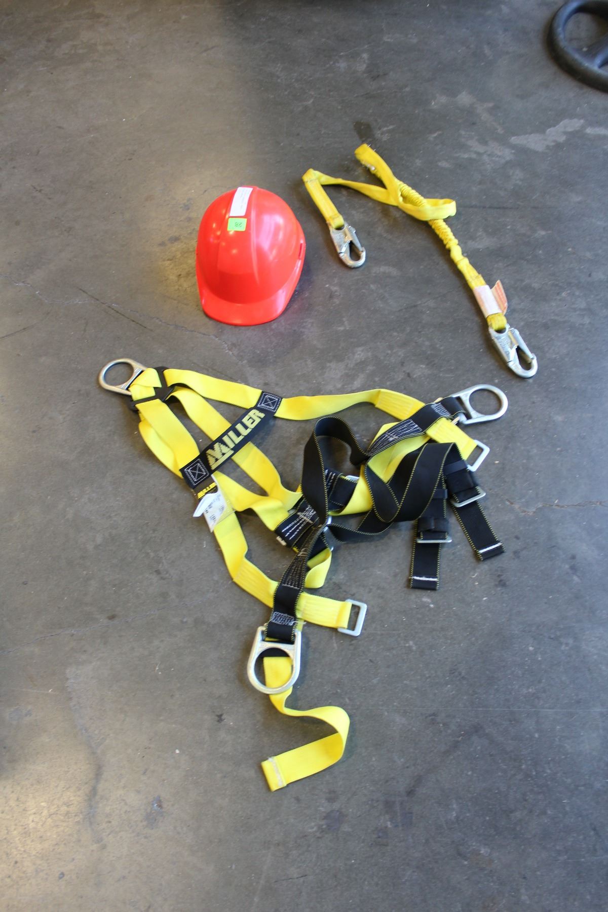 MILLER SAFETY HARNESS, HARD HAT AND LANYARD