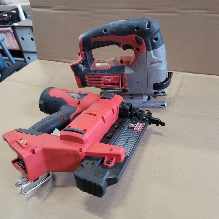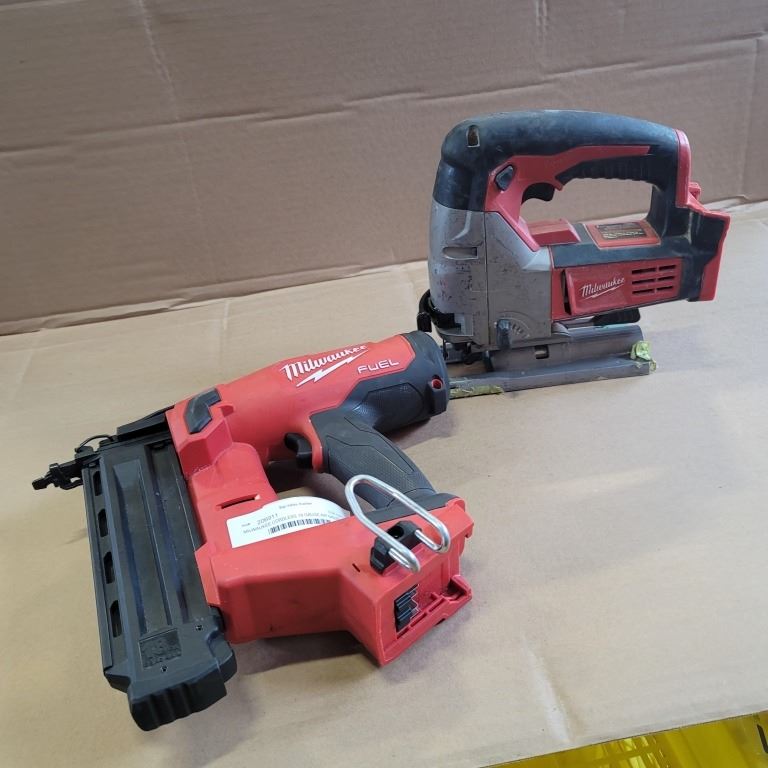 MILWAUKEE CORDLESS 18 GAUGE AIR NAILER AND JIGSAW, FOR PARTS OR REPAIR