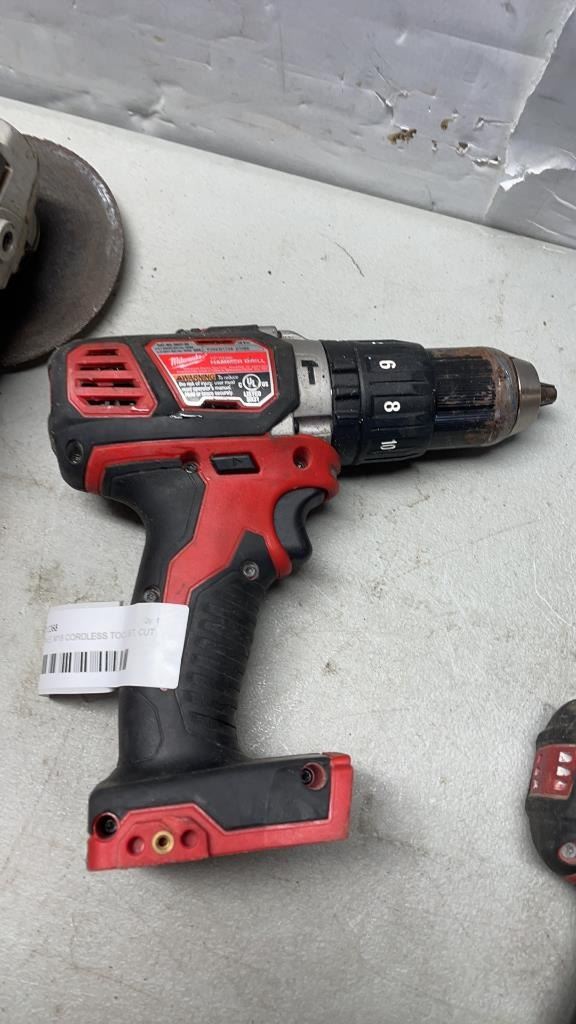 MILWAUKEE M18 CORDLESS TOOL SET, CUT OFF/GRINDER, HAMMER DRILL AND IMPACT DRIVER, XC5.0, XC4.0 AND X