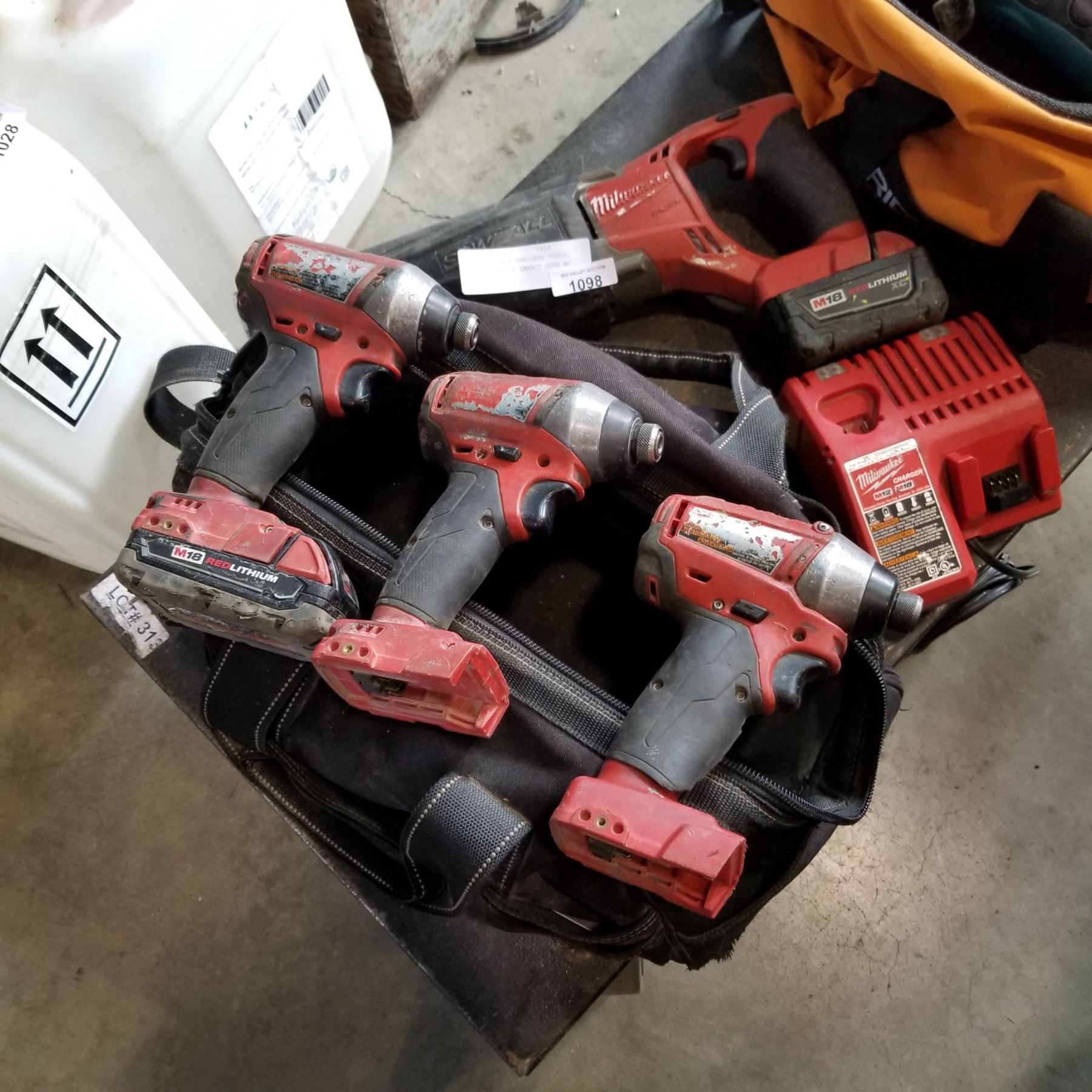 MILWAUKEE M18 CORDLESS TOOLS, SAWZALL, AND 2 IMPACT GUNS W/ CHARGER