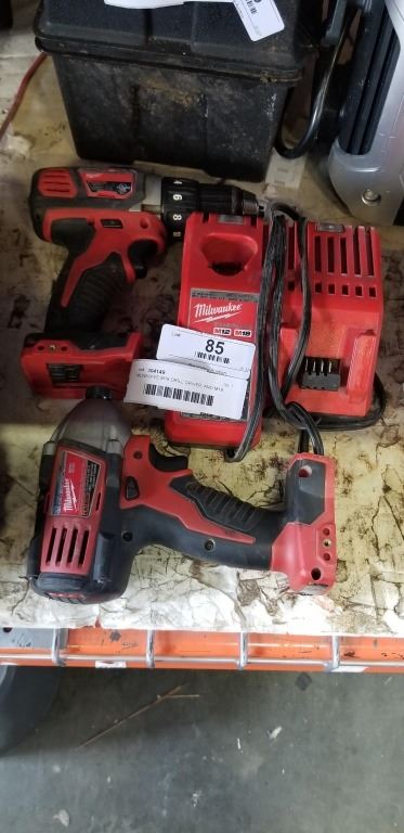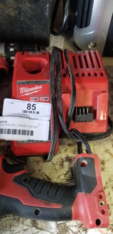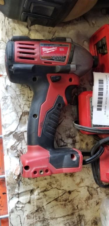 MILWAUKEE M18 DRILL DRIVER, AND M18 IMPACT DRIULL, WITH RAPID CHARGER, NO BATTERIES, BOTH WORKING