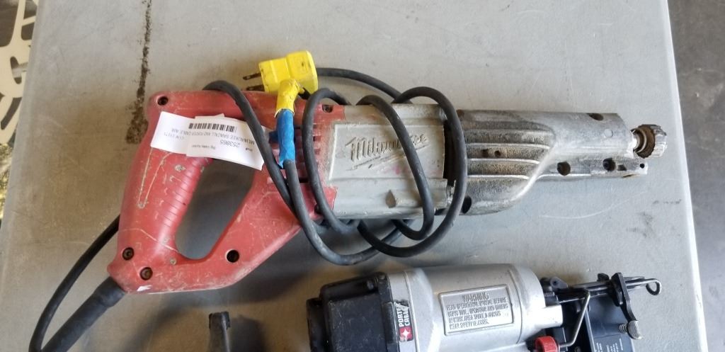 MILWAUKEE SAWZALL AND PORTER CABLE AIR NAILER, BOTH WORKING