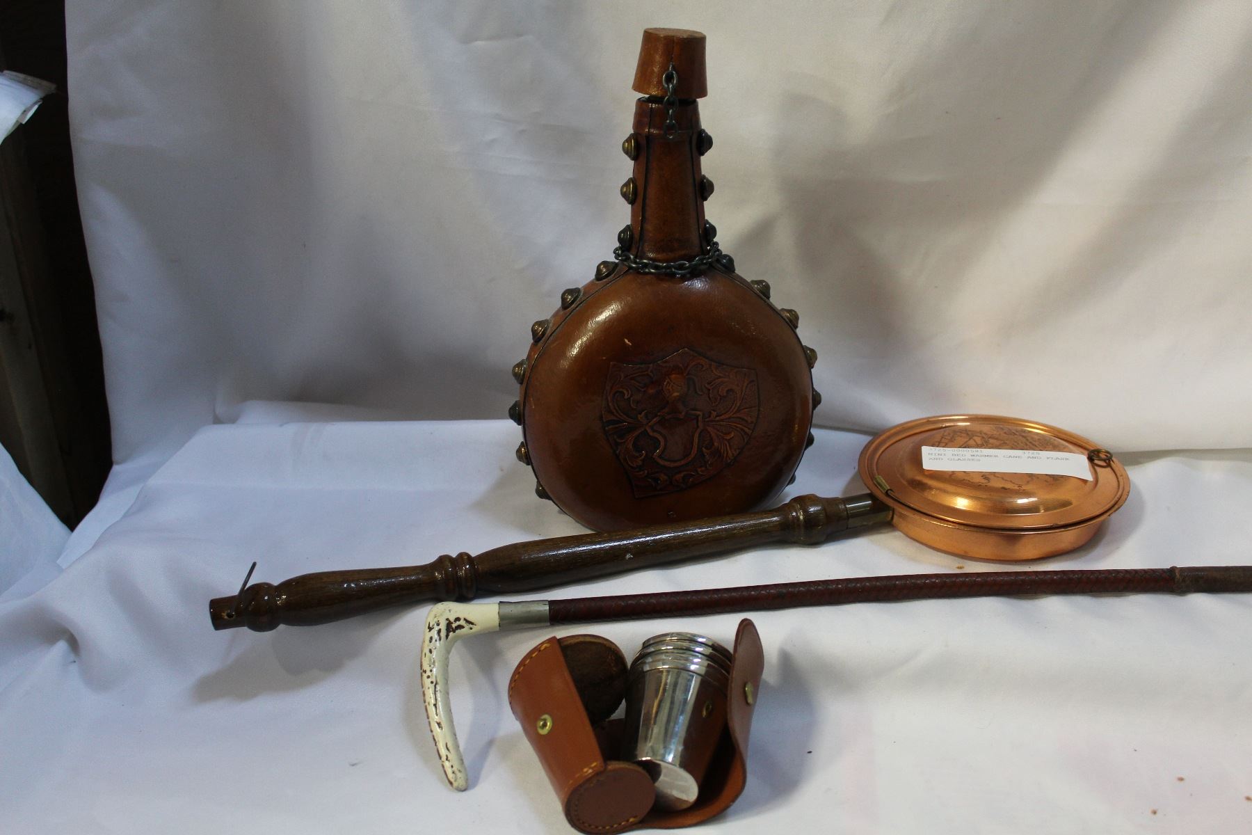 MINI BED WARMER CANE AND FLASK AND GLASSES