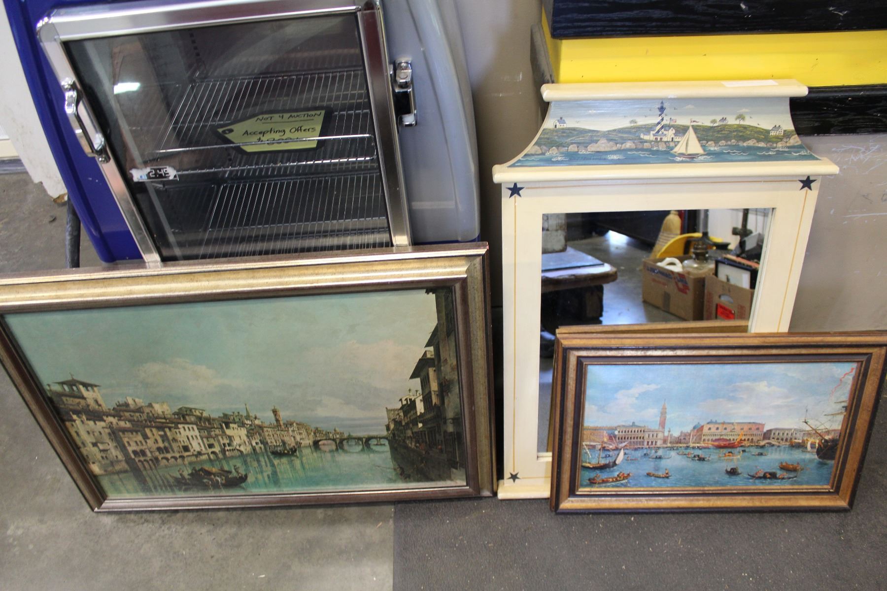 MIRROR AND 2 FRAMED VENICE PRINTS