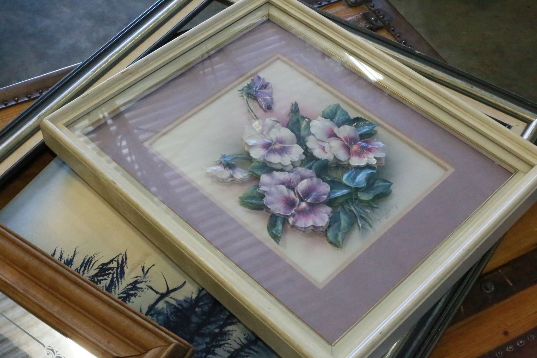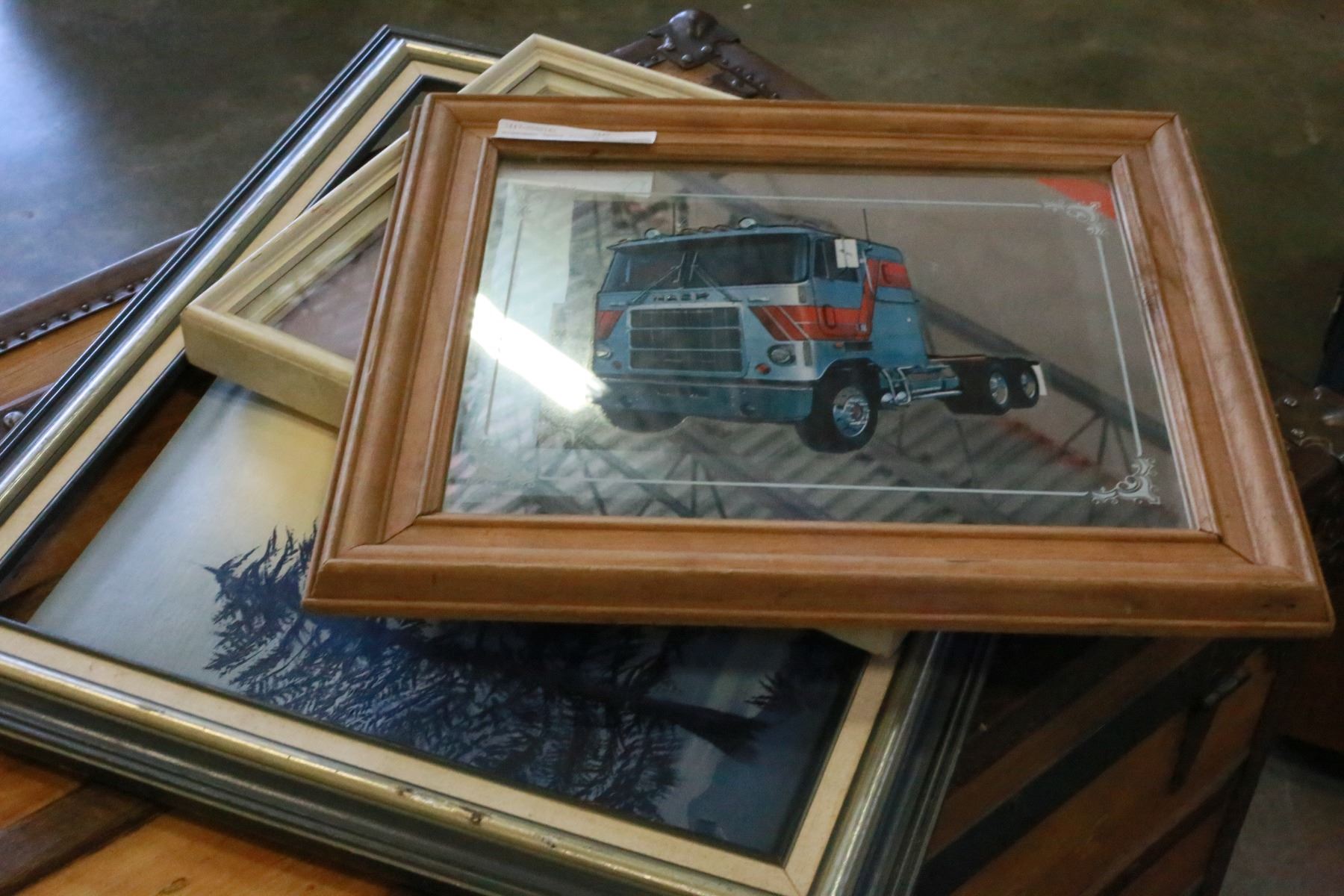 MIRRORED TRUCK PICTURE OIL PAINTING ON CANVAS AND FLOWER PRINT