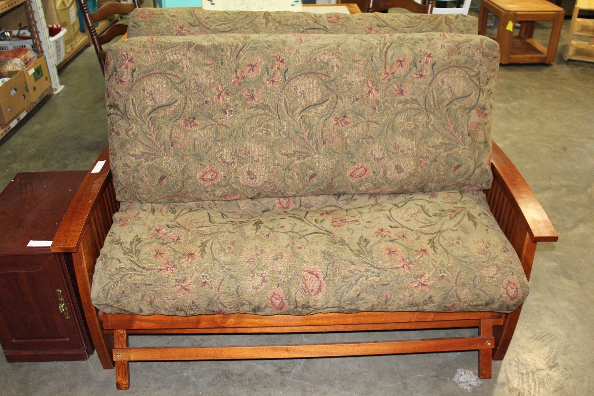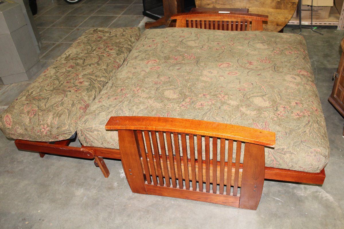 MISSION STYLE FOLD OUT FUTON BED WITH MATTRESS