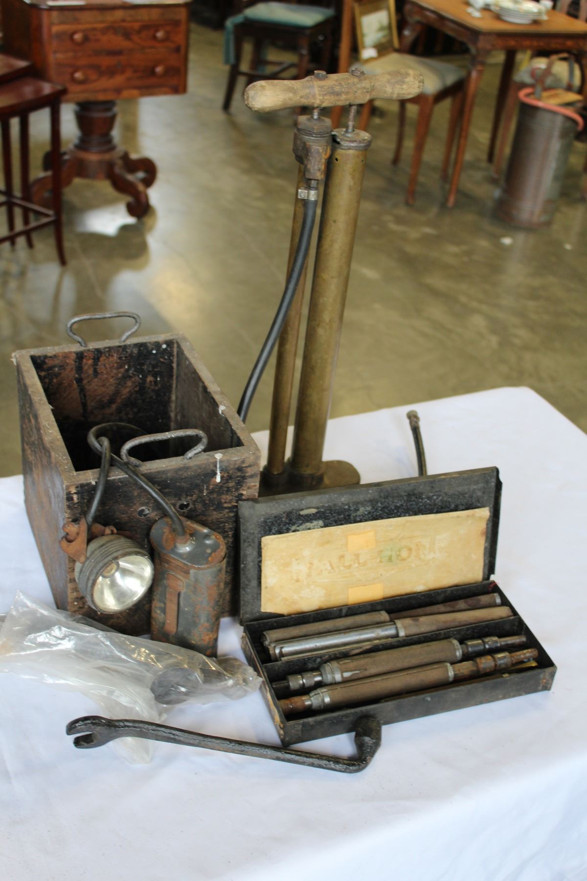 MODEL T BATTERY BOX AND ANTIQUE PUMP