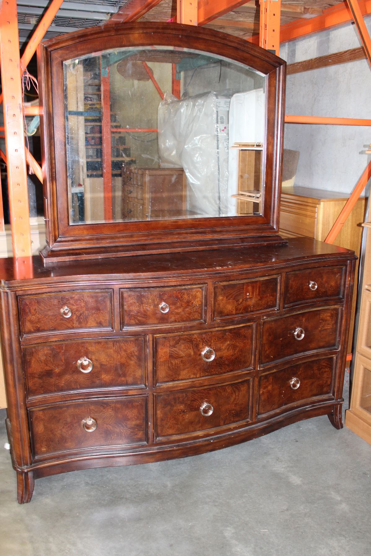 MODERN 10 DRAWER DRESSER AND MIRROR WITH STORAGE