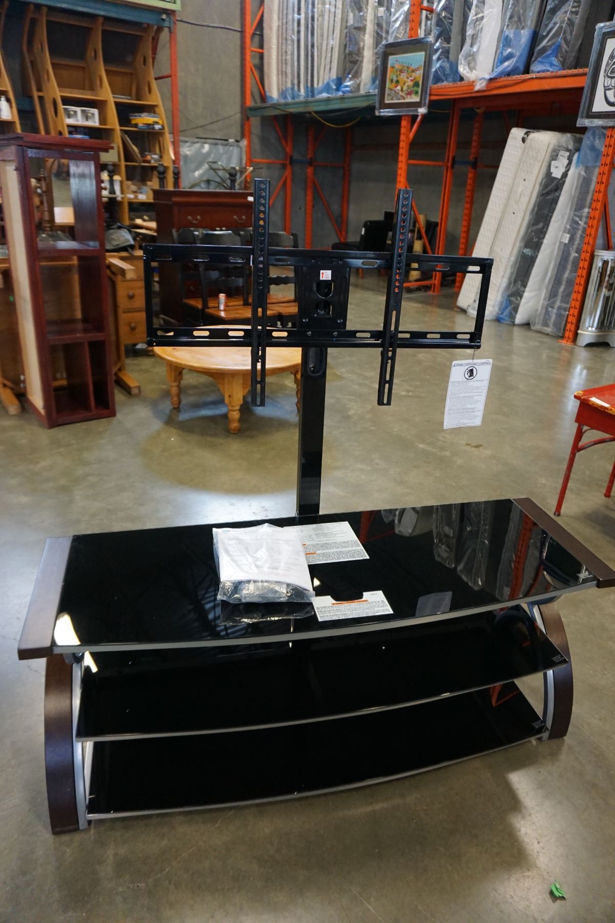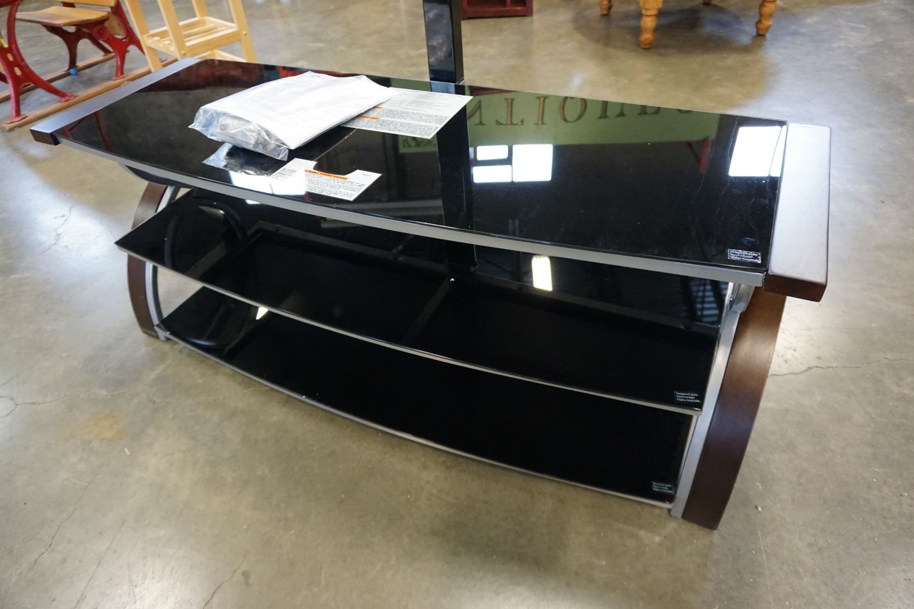 MODERN 3 TIER GLASS ENTERTAINMENT STAND WITH TV MOUNT