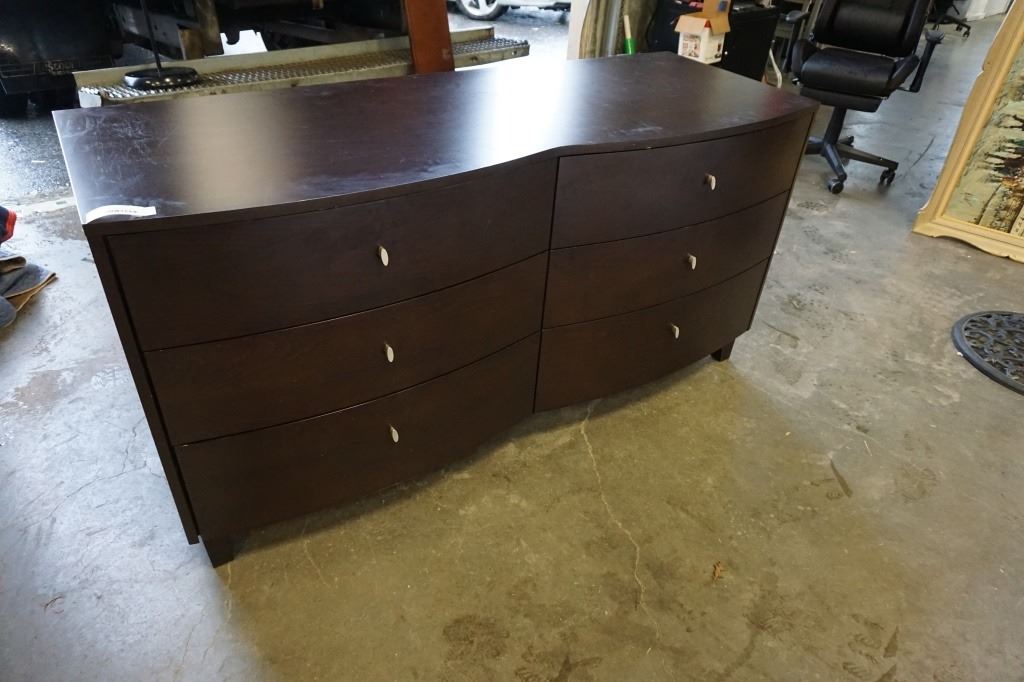 MODERN 6 DRAWER DOUBLE BOW FRONT DRESSER AND 2 DRAWER NIGHTSTAND