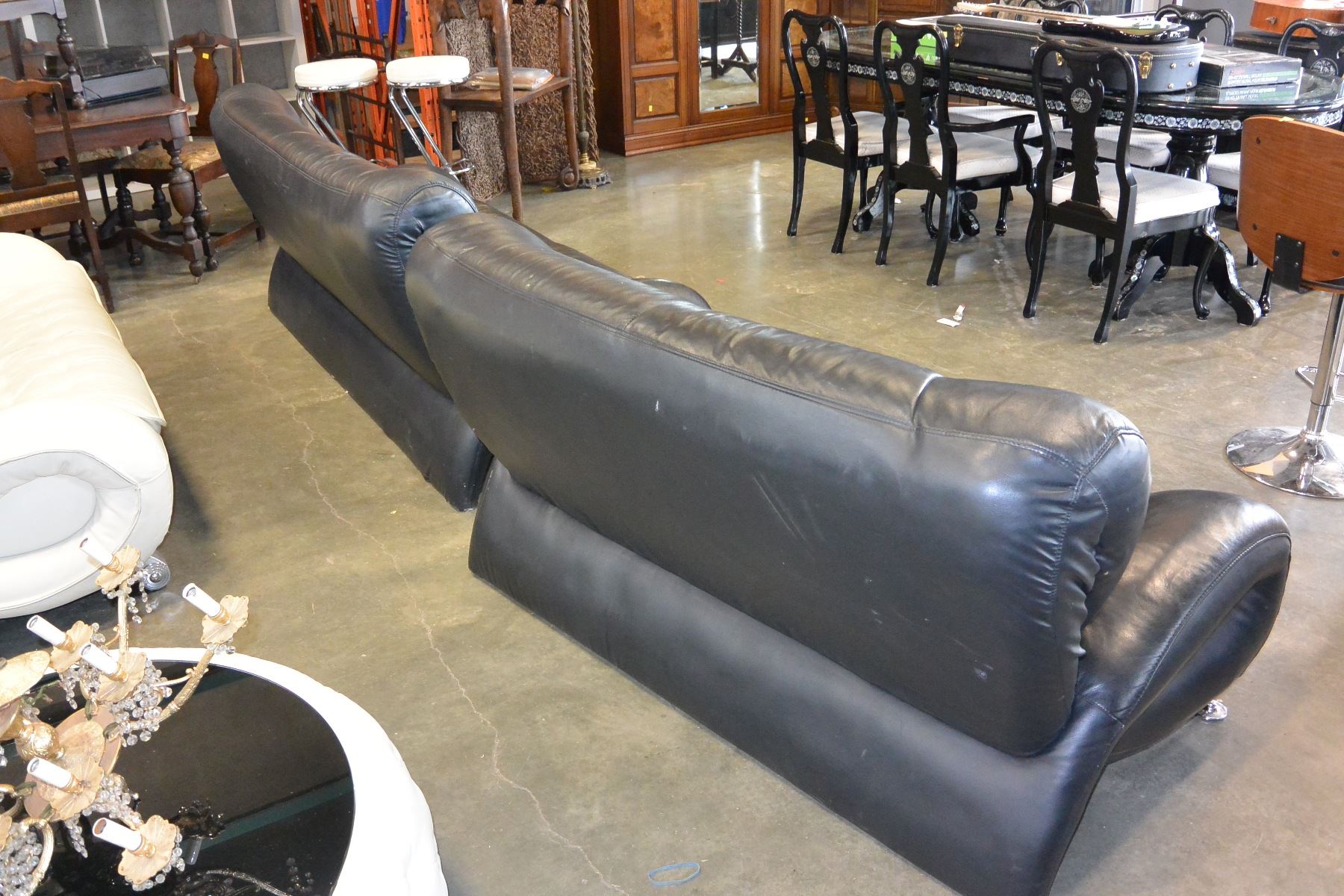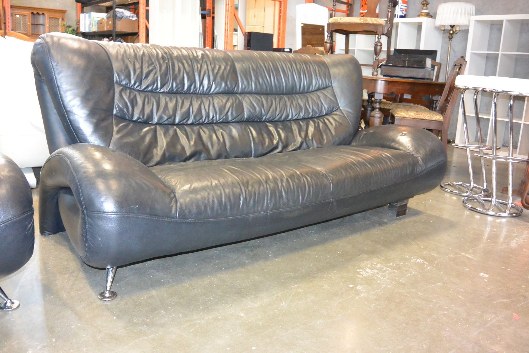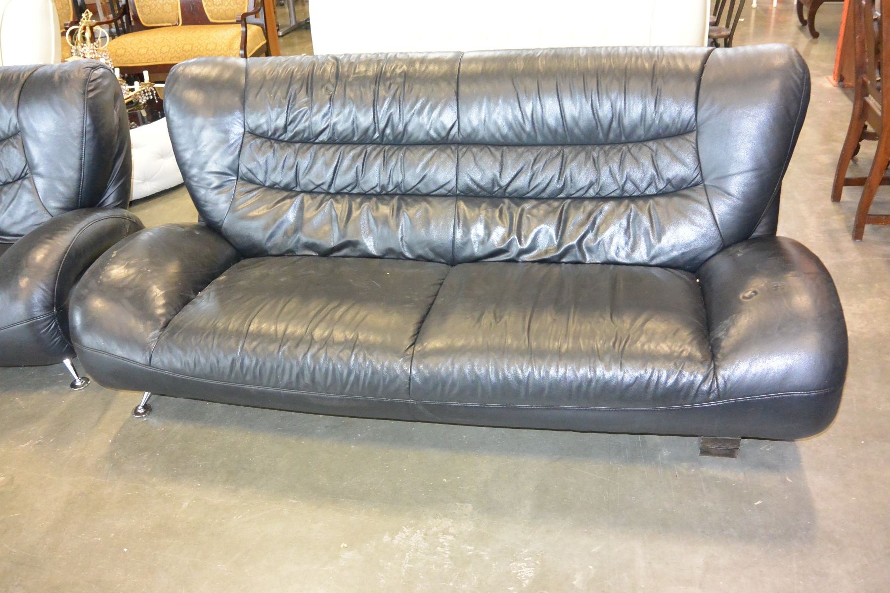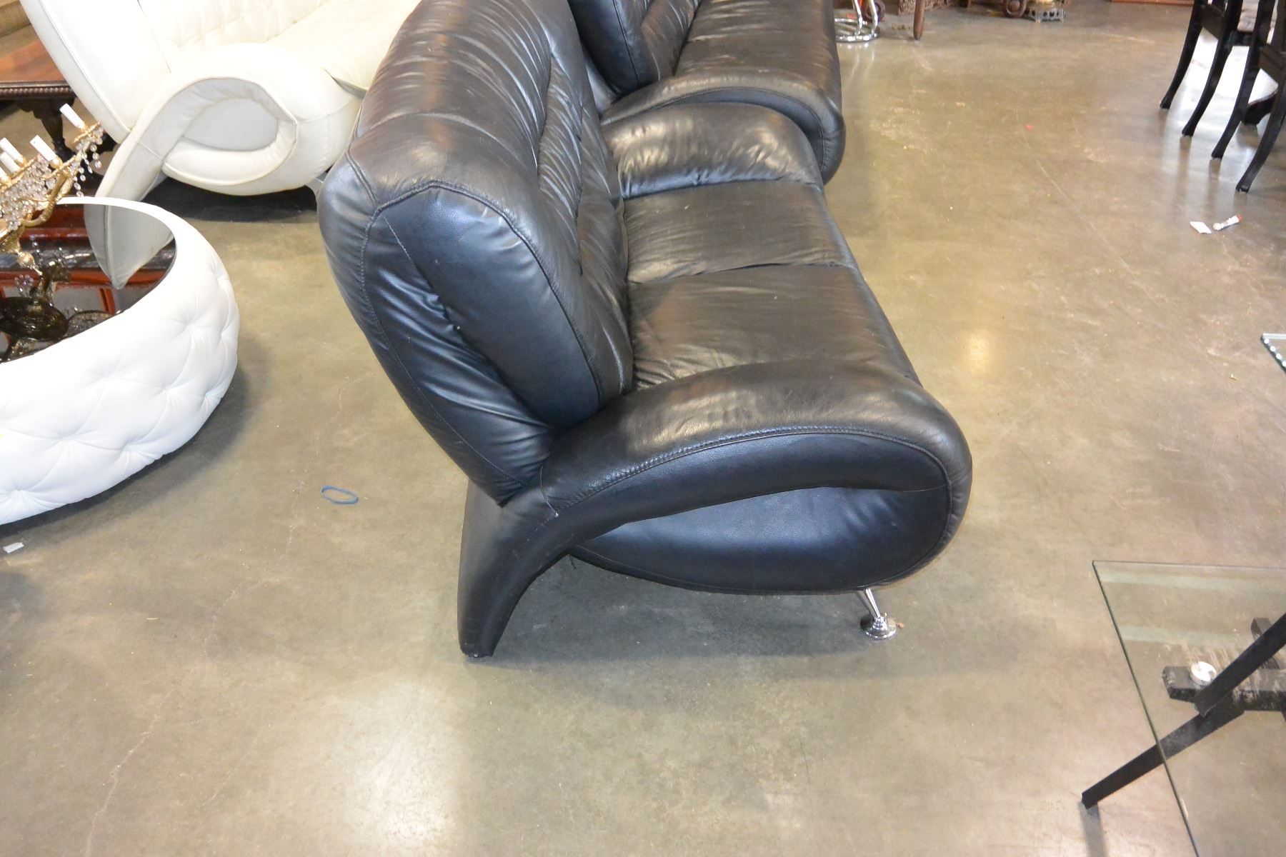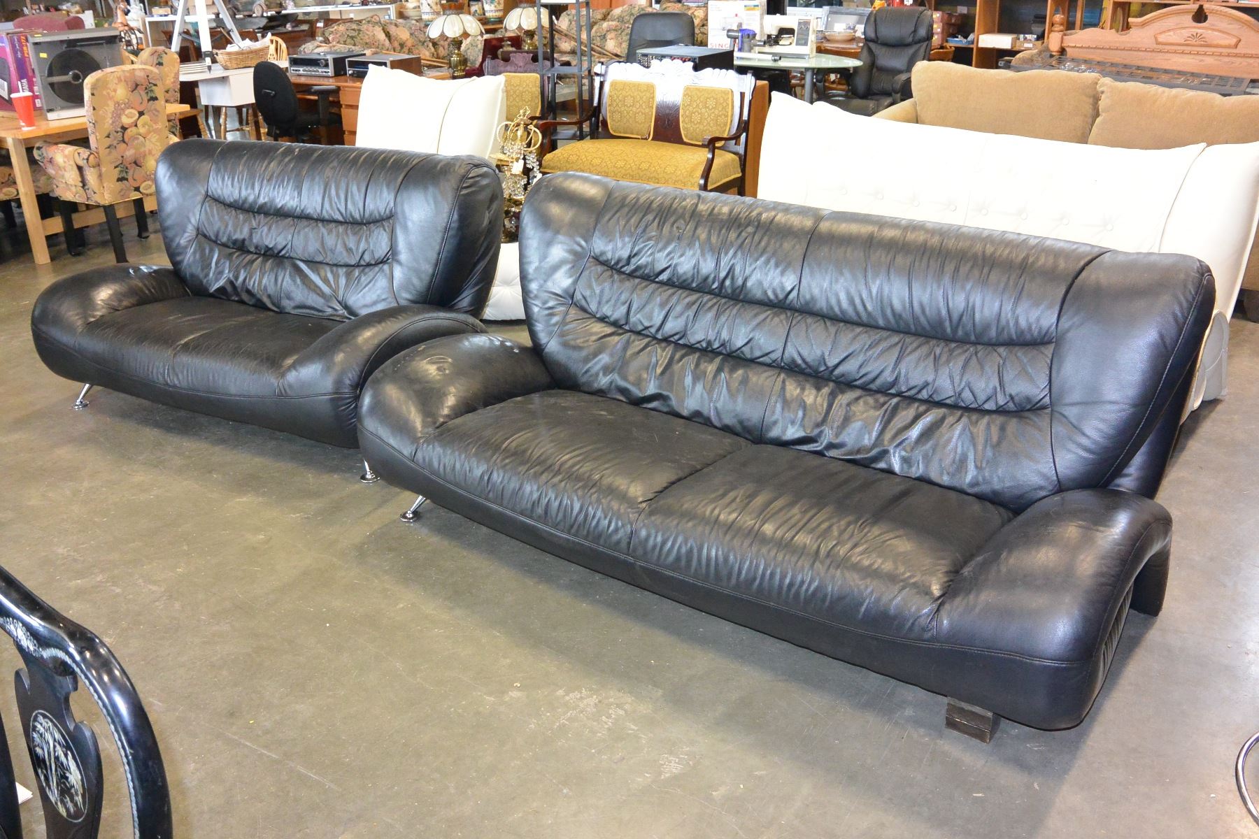 MODERN BLACK LEATHER SOFA AND LOVESEAT