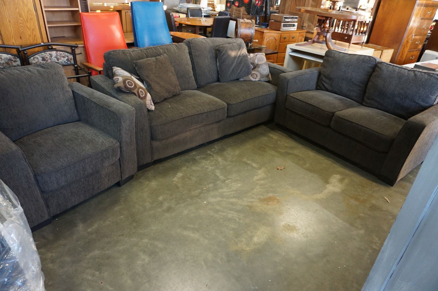 MODERN BROWN 3PC SOFA SET W/ THROW PILLOWS