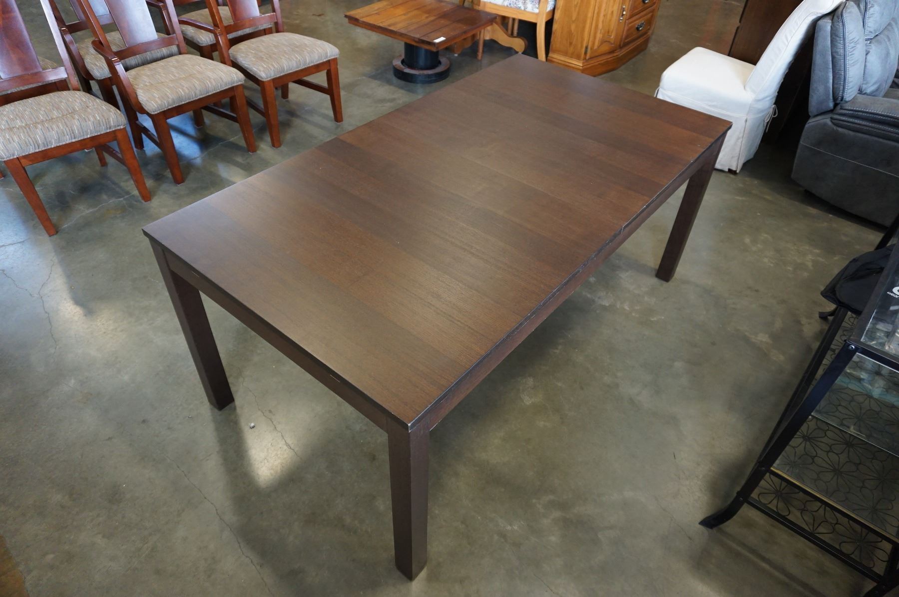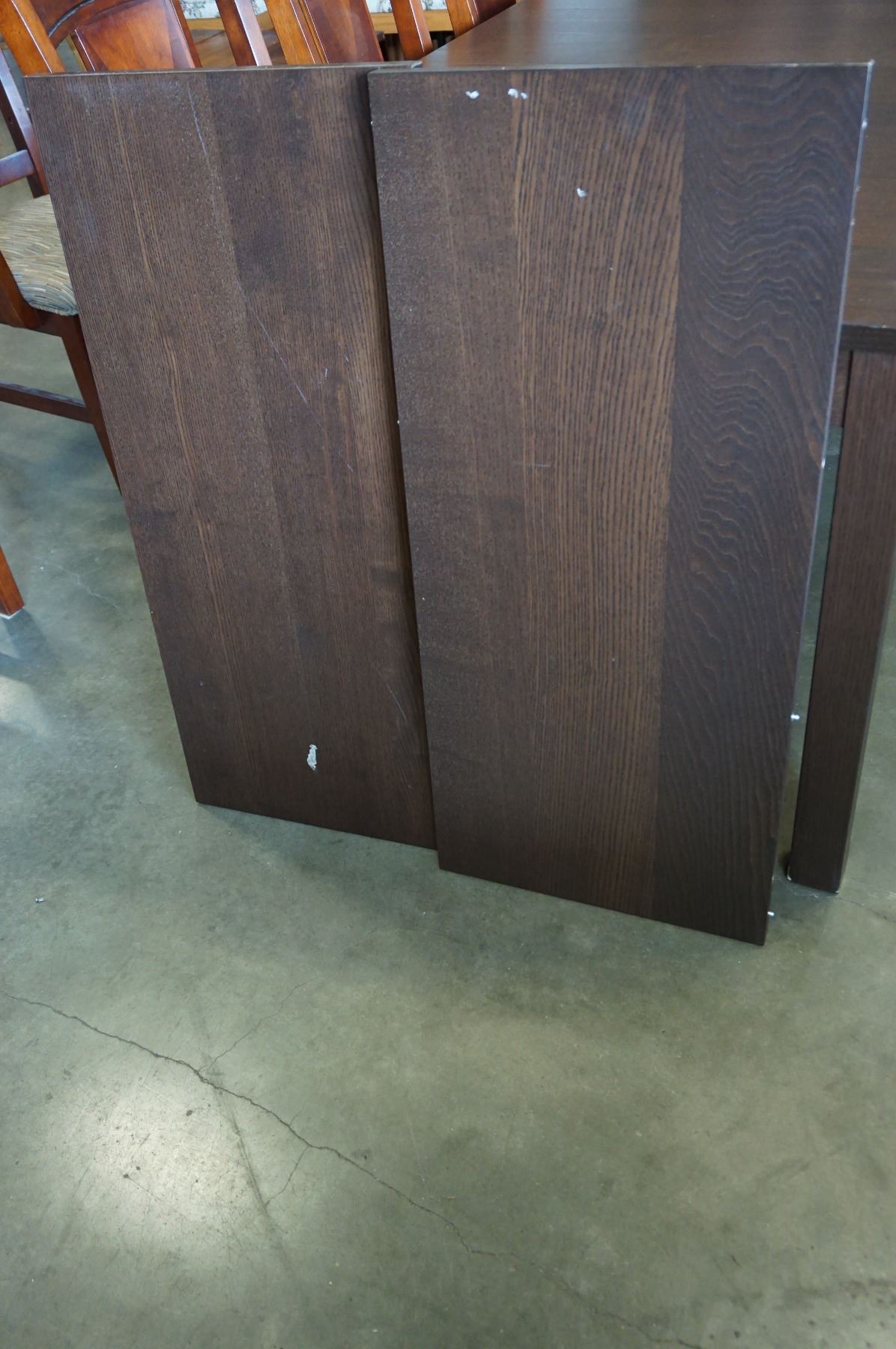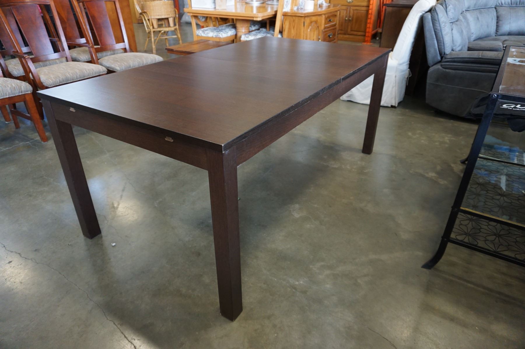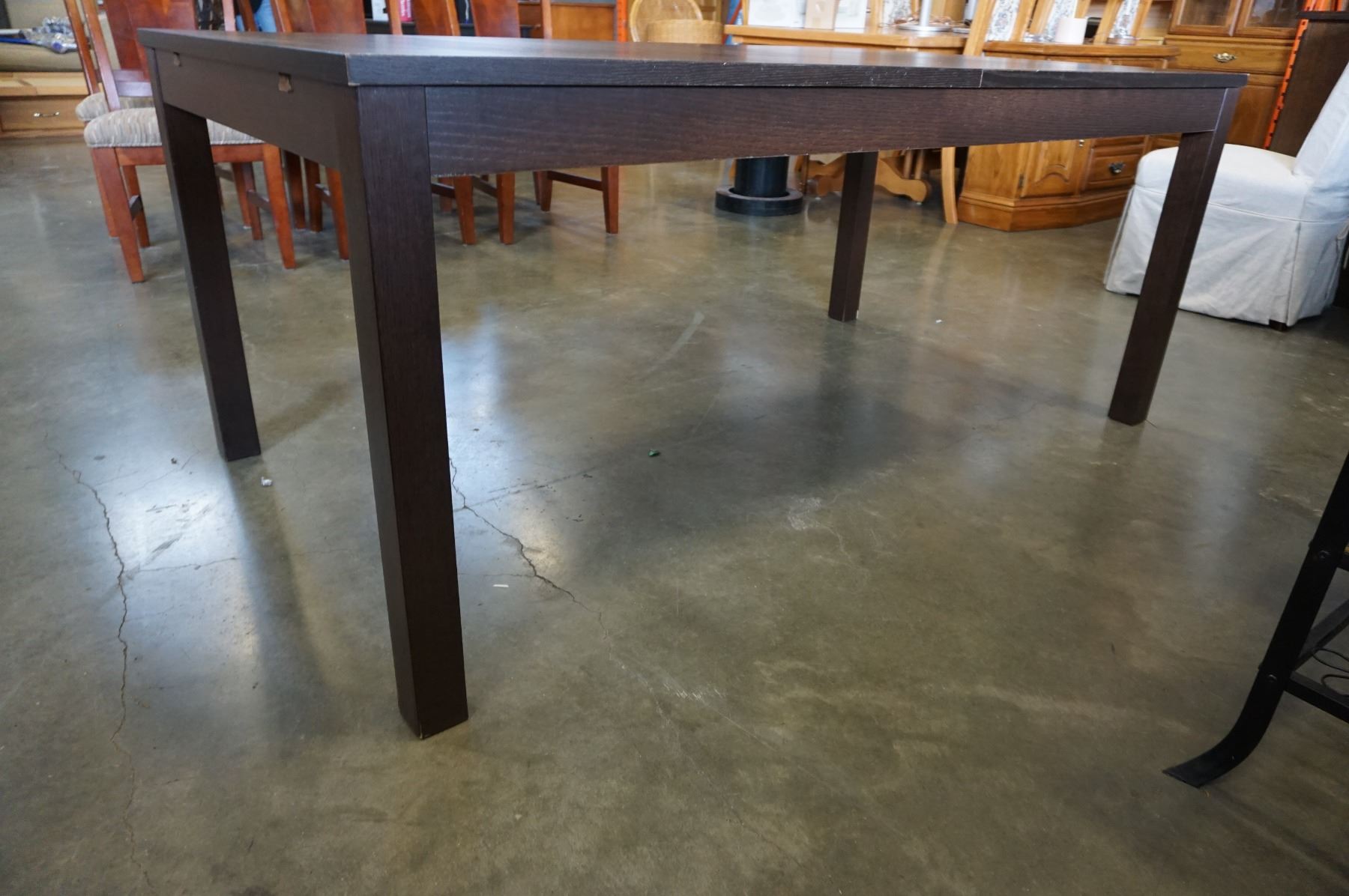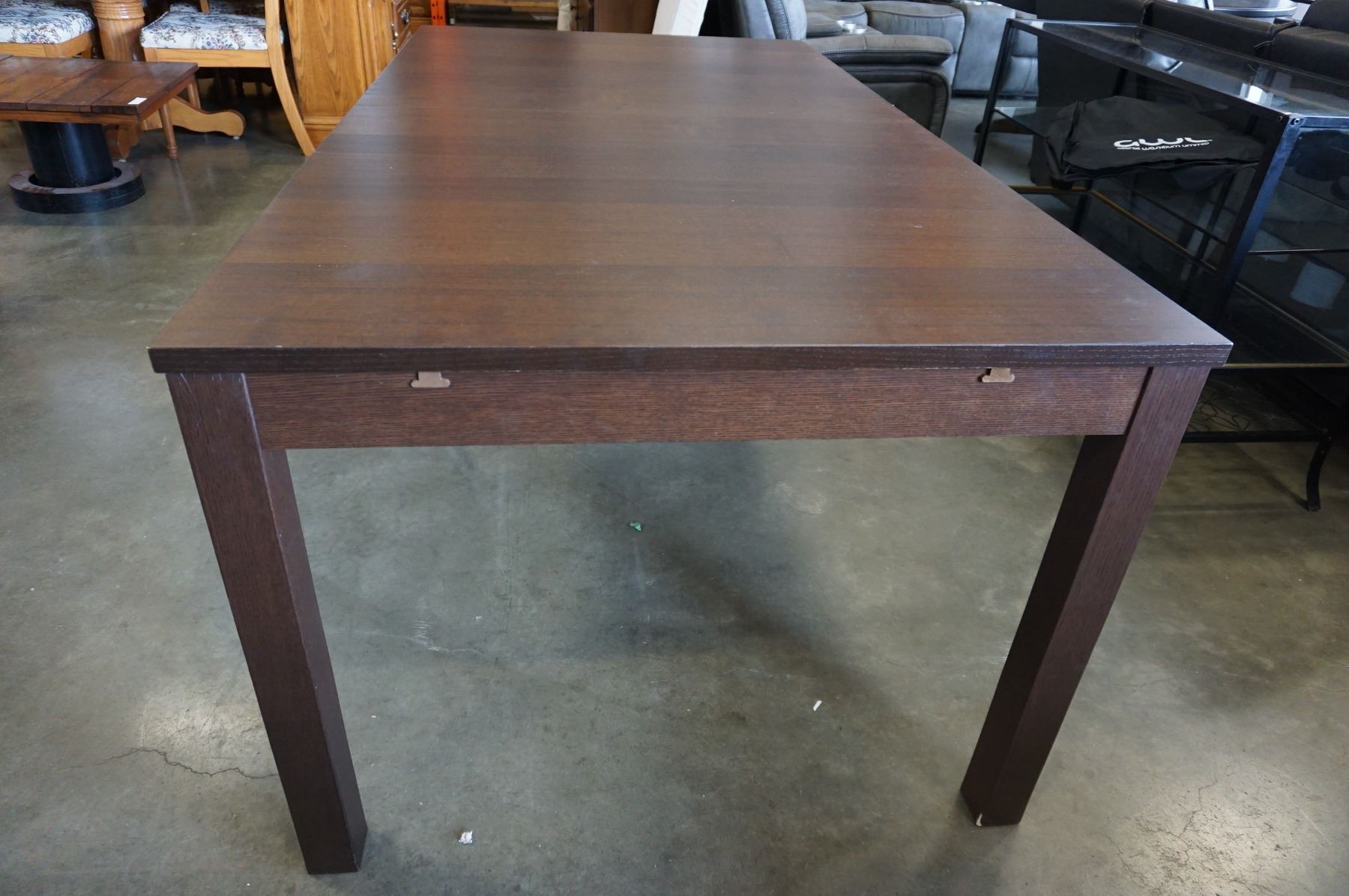 MODERN BROWN IKEA DINING TABLE WITH 2 EXTENSIONS AND HIDDEN EXTENSION STORAGE