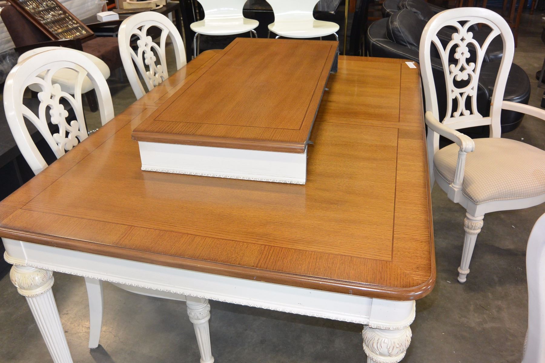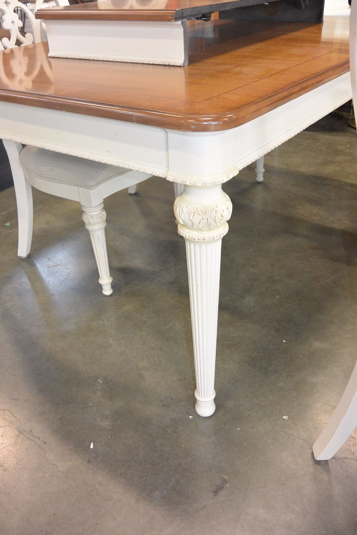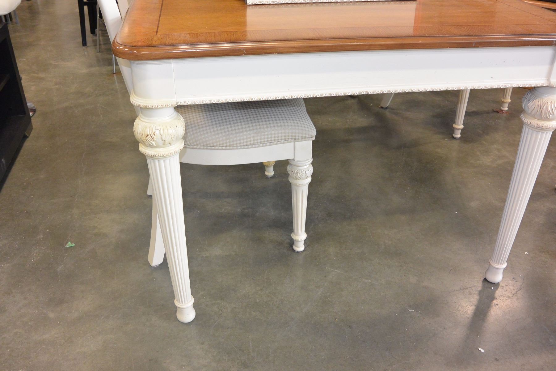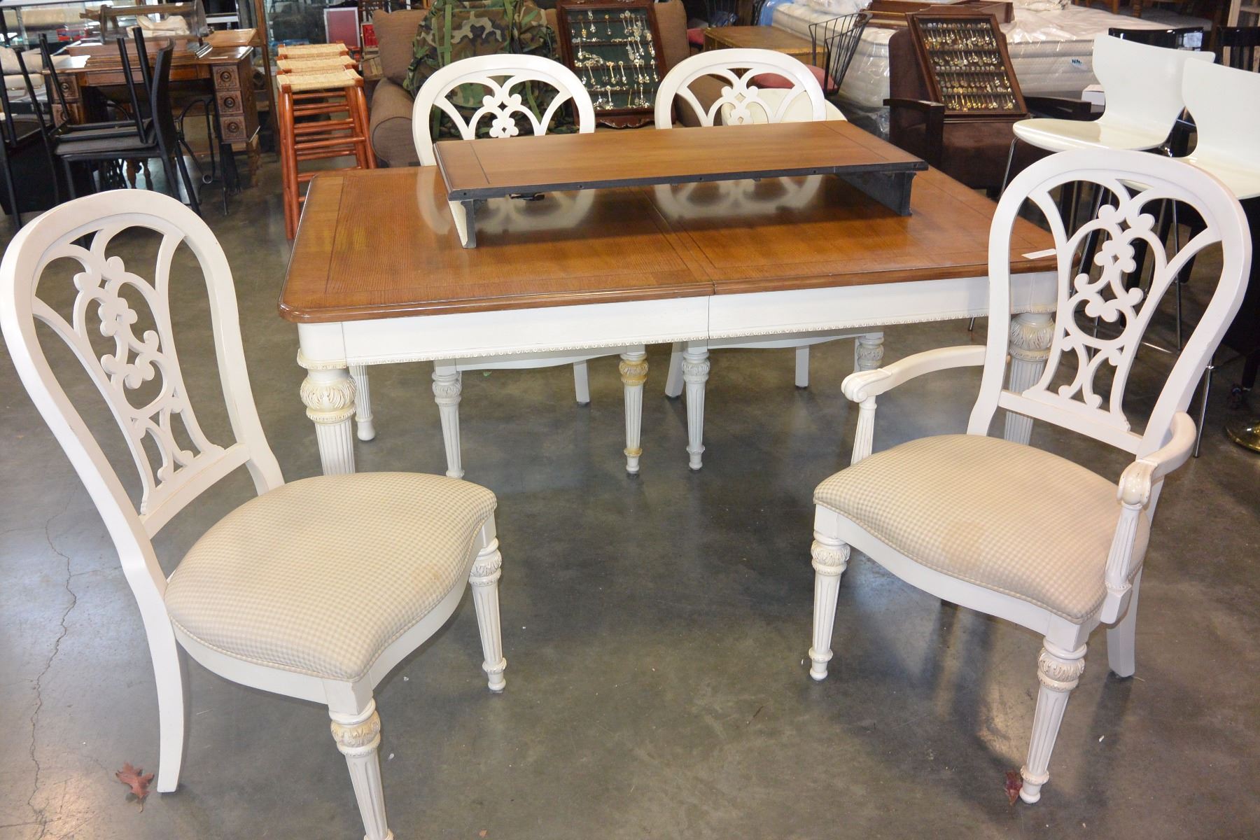 MODERN CARVED COMTEMPORARY DINING TABLE WITH LEAF AND FOUR CHAIRS