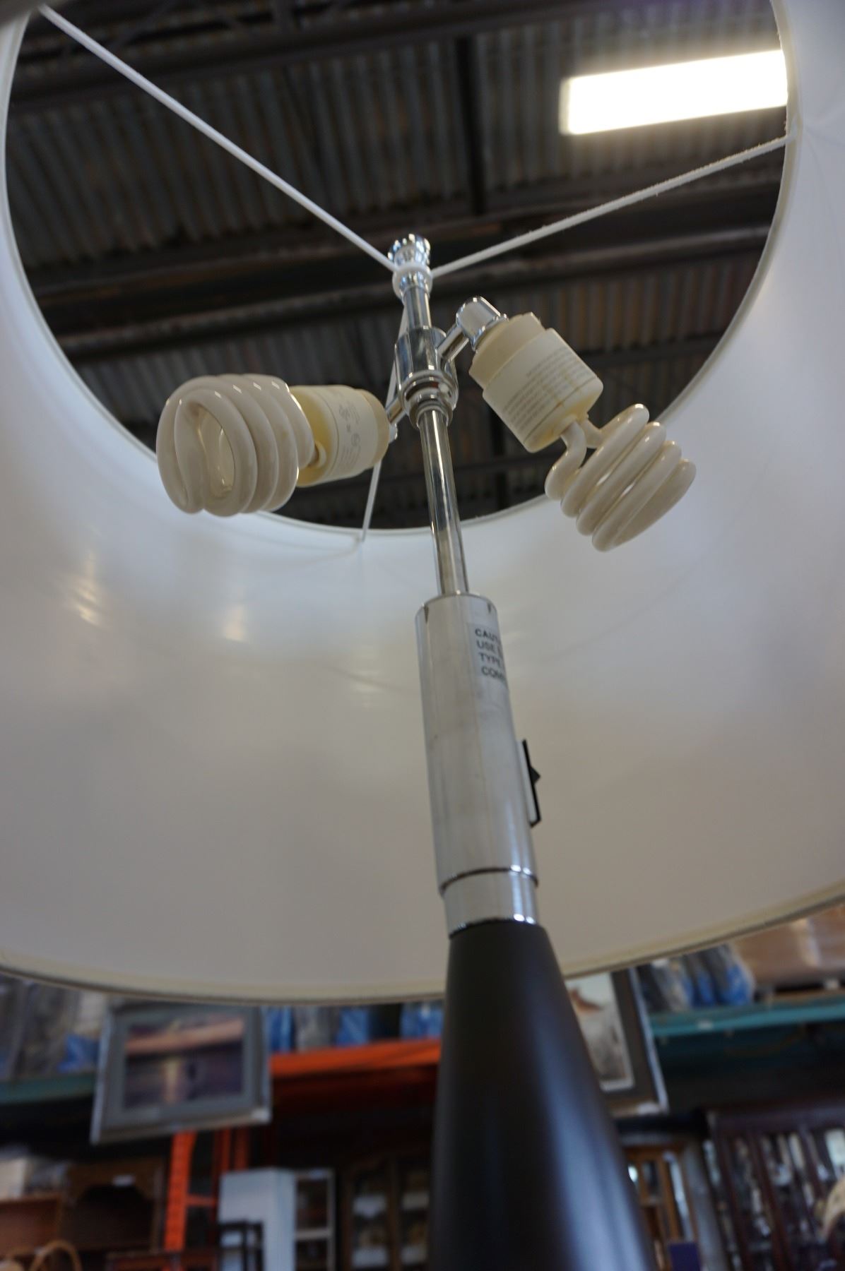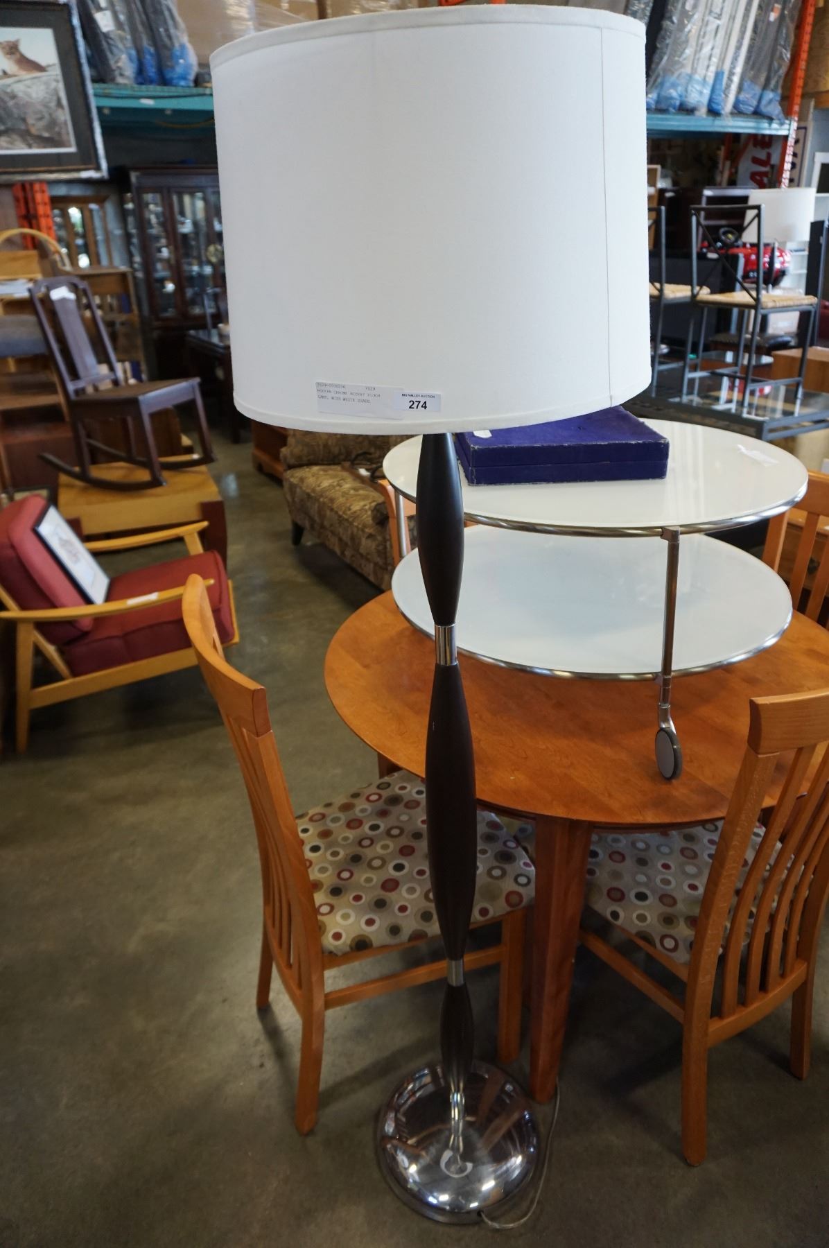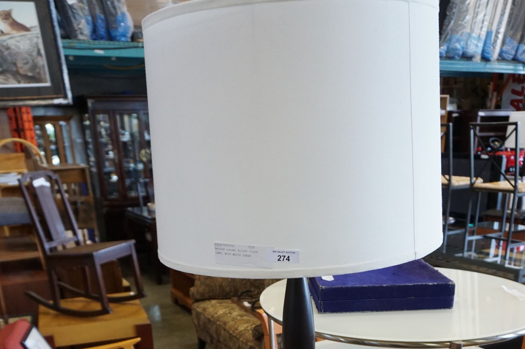 MODERN CHROME ACCENT FLOOR LAMP, WITH WHITE SHADE