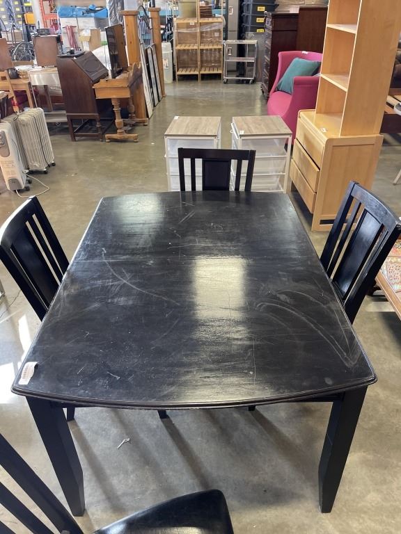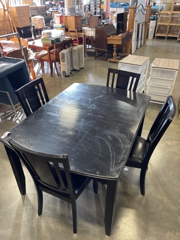 MODERN DARK FINISH DINING TABLE WITH 4 LEATEHR SEAT CHAIRS