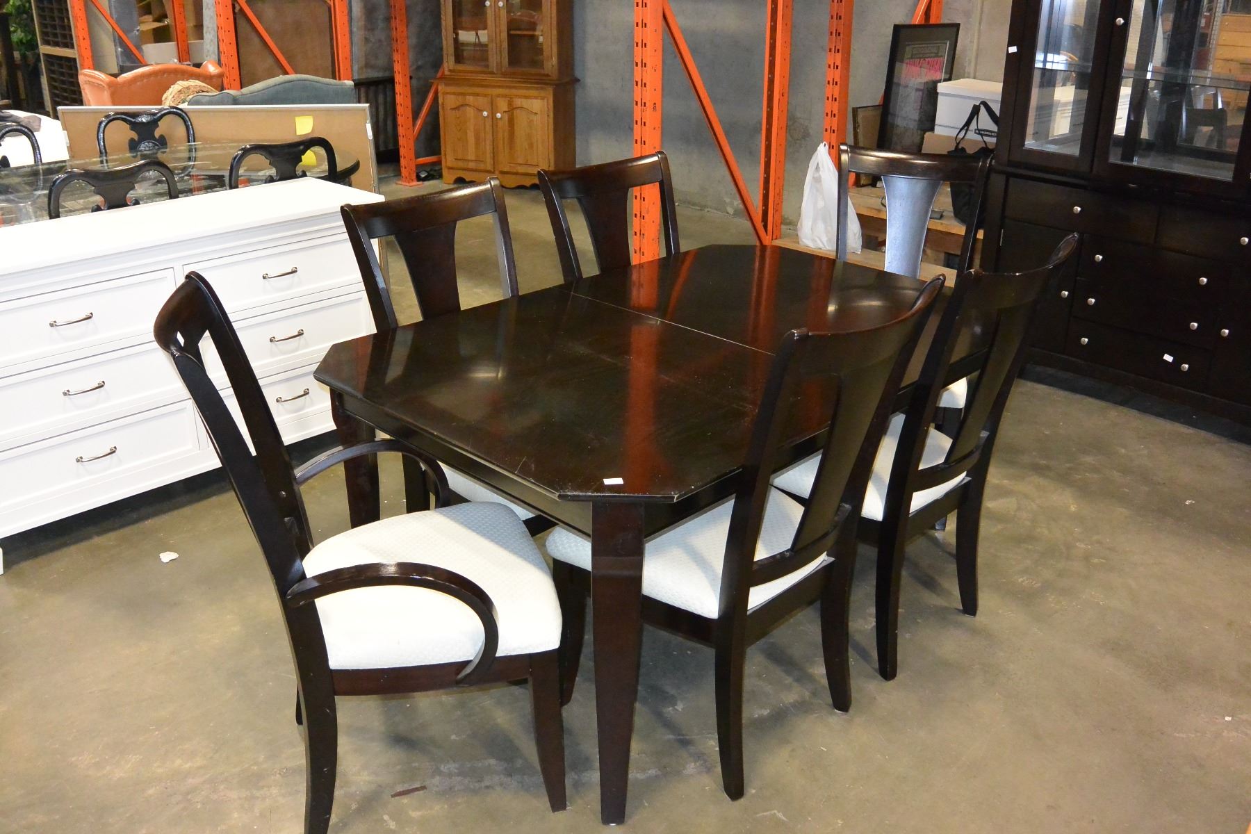 MODERN DINING TABLE WITH LEAF AND 6 CHAIRS