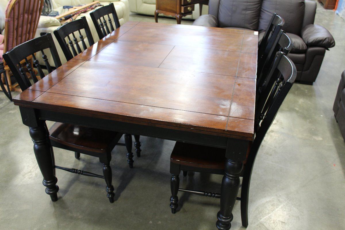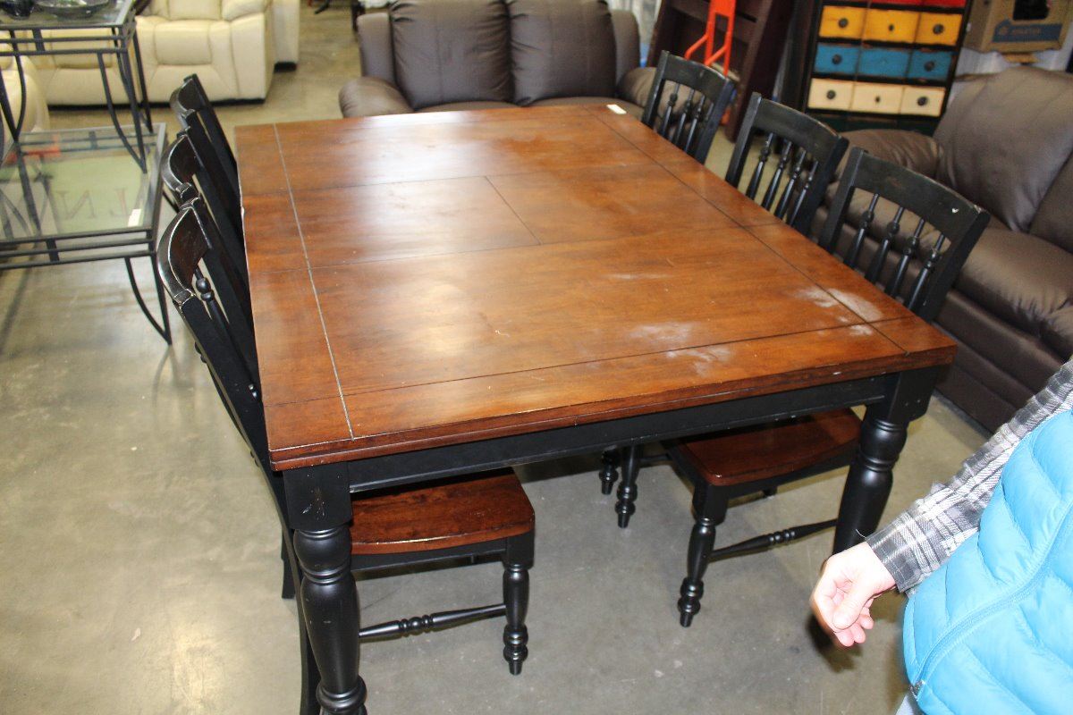 MODERN DINING TABLE WITH LEAF AND SIX CHAIRS