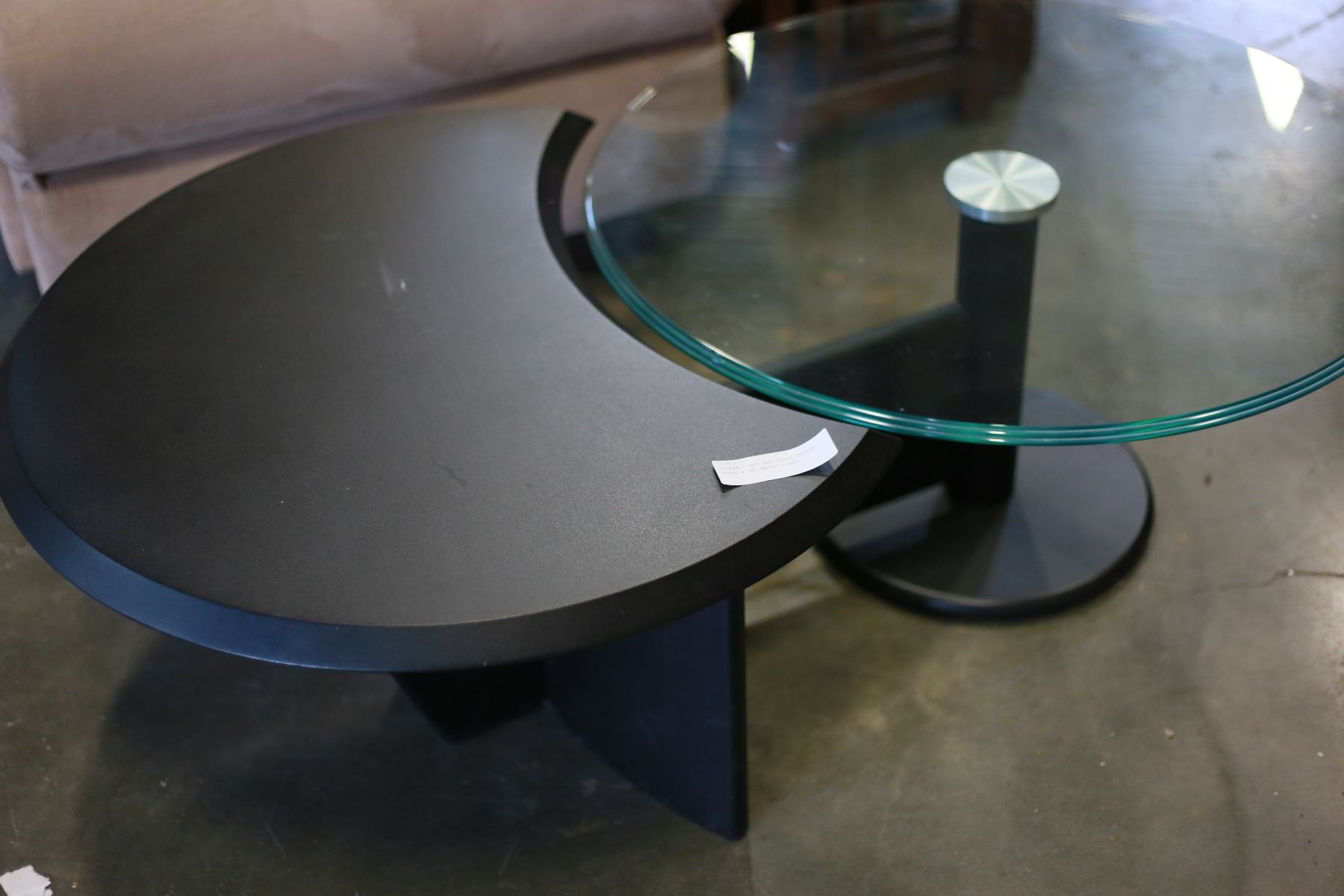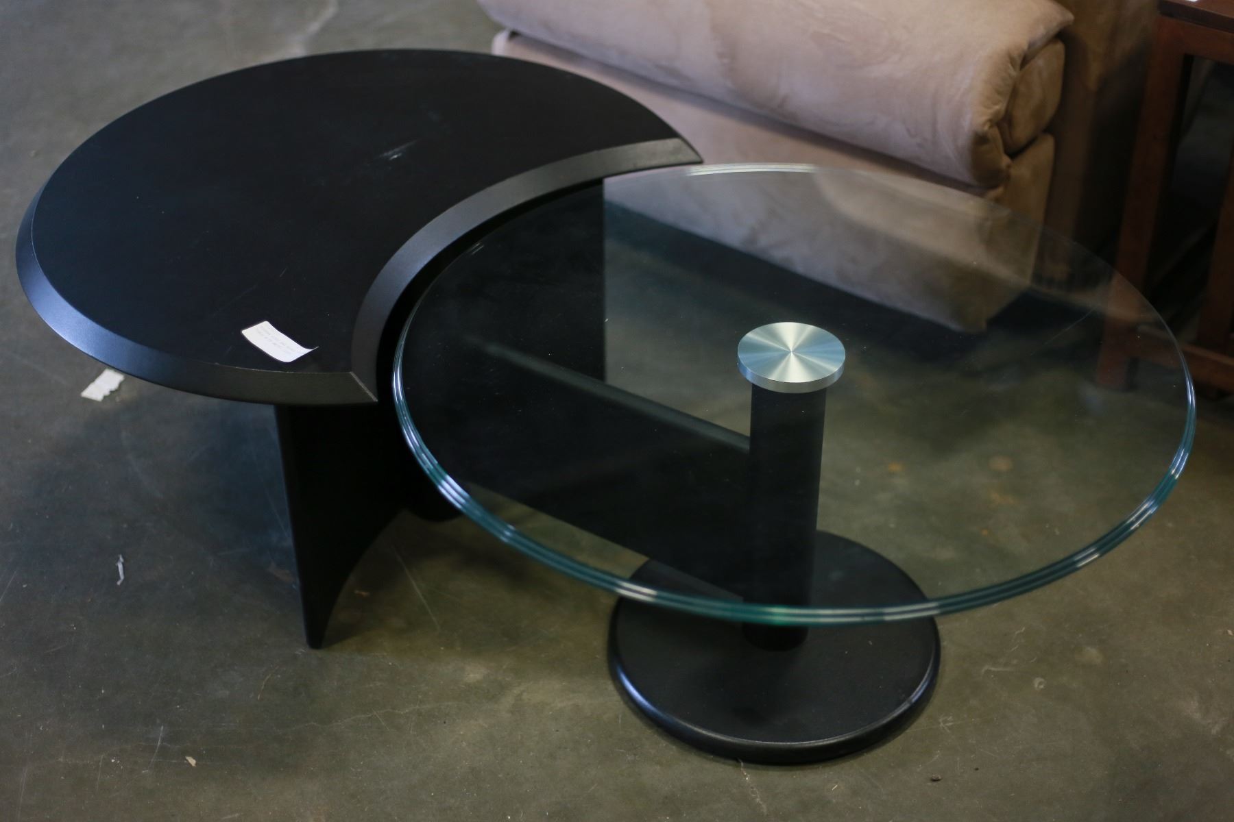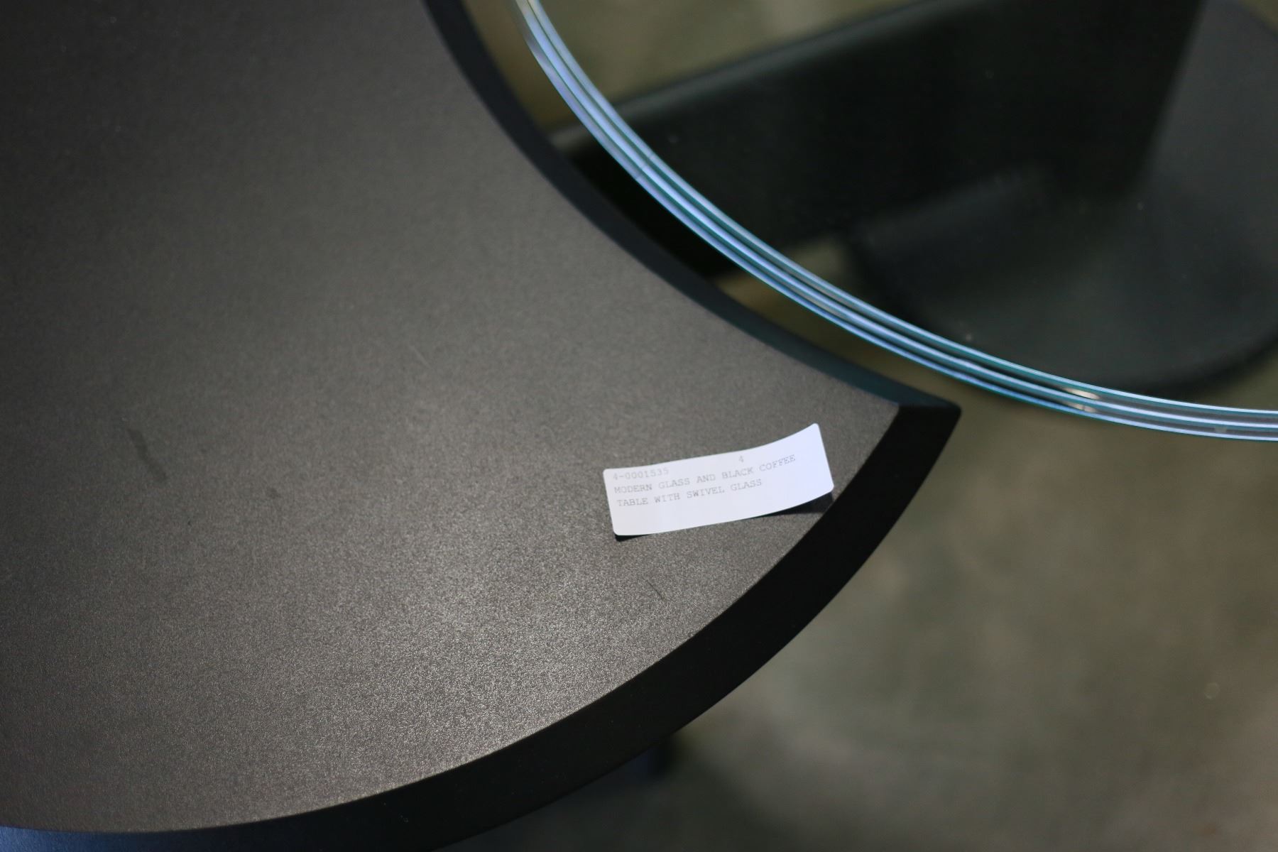 MODERN GLASS AND BLACK COFFEE TABLE WITH SWIVEL GLASS