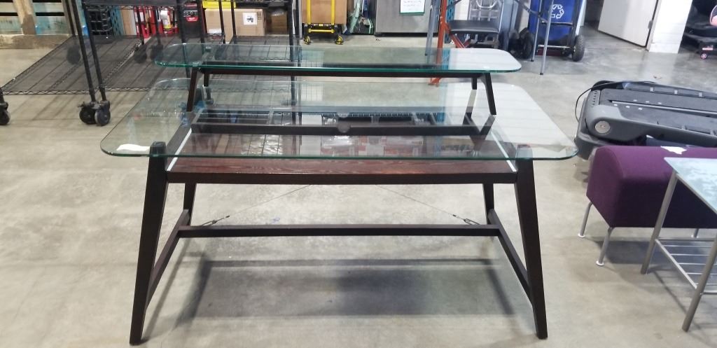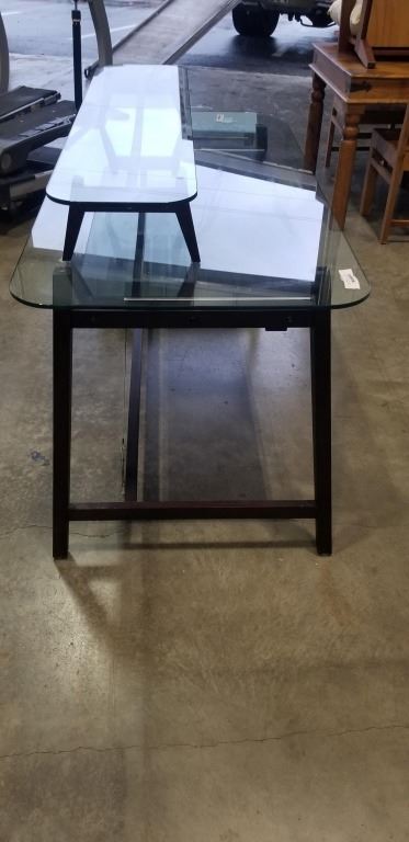 MODERN GLASS DESK WITH MATCHING MONITOR RISER, 60X30 INCH