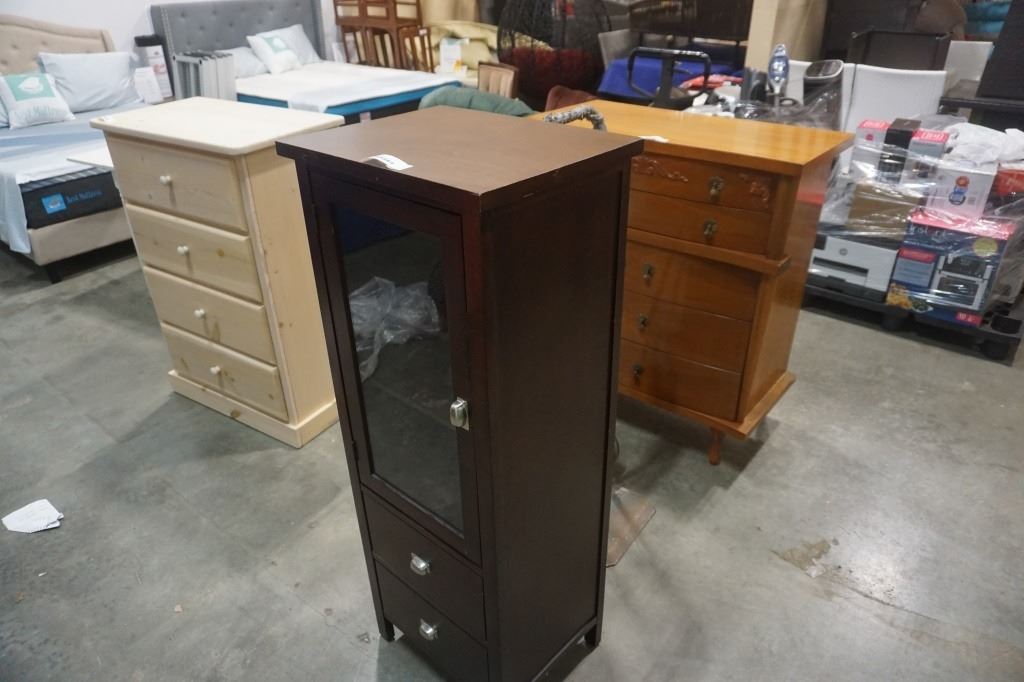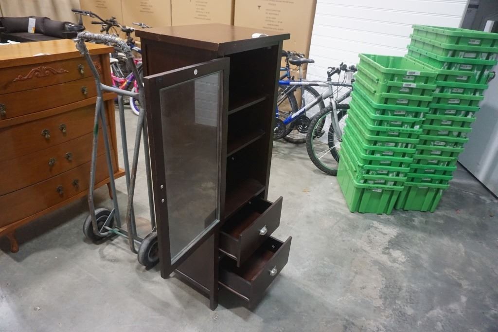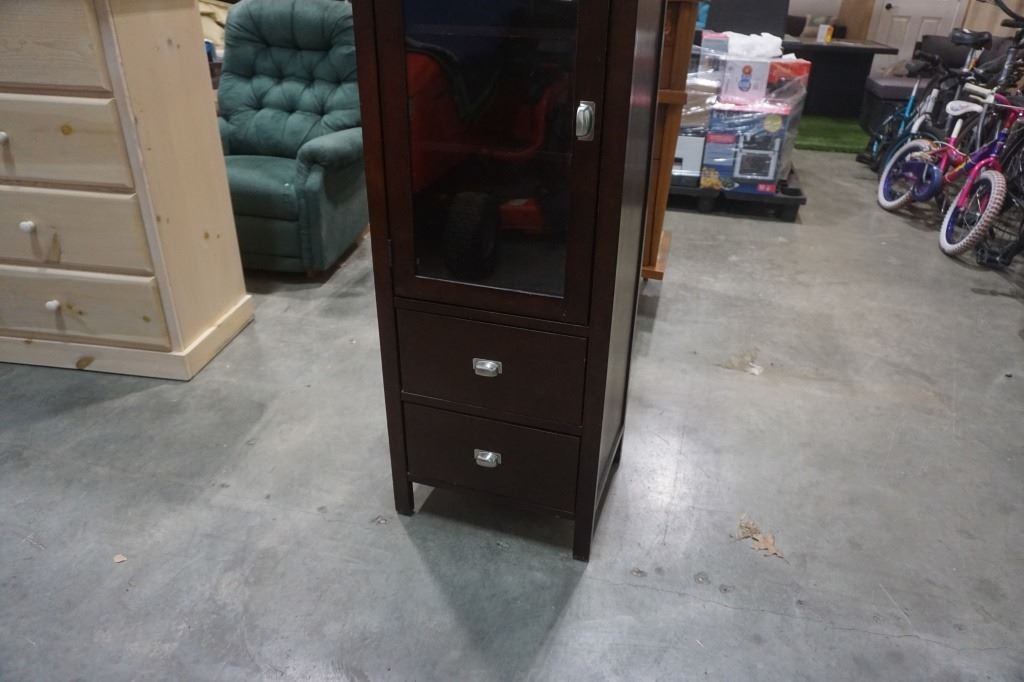 MODERN GLASS DOOR MEDIA CABINET