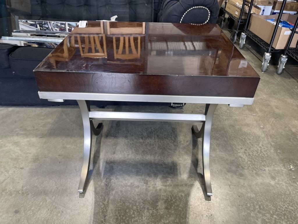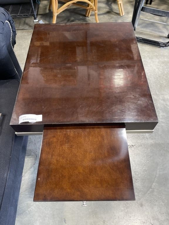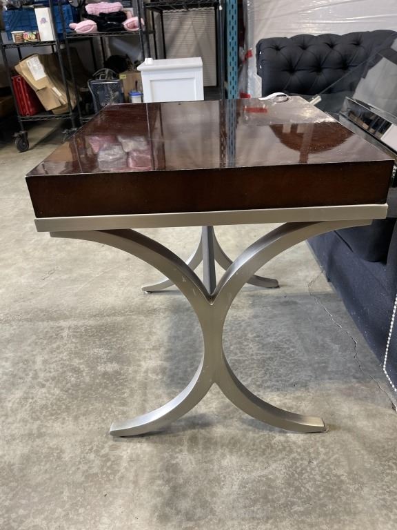 MODERN LAMP TABLE WIT HEAVY METAL BASE AND PULL OUT TRAY