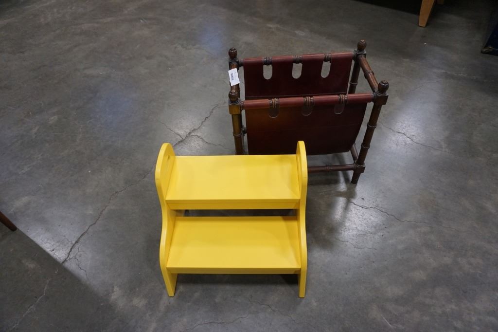 MODERN MAGAZINE RACK AND YELLOW STEP