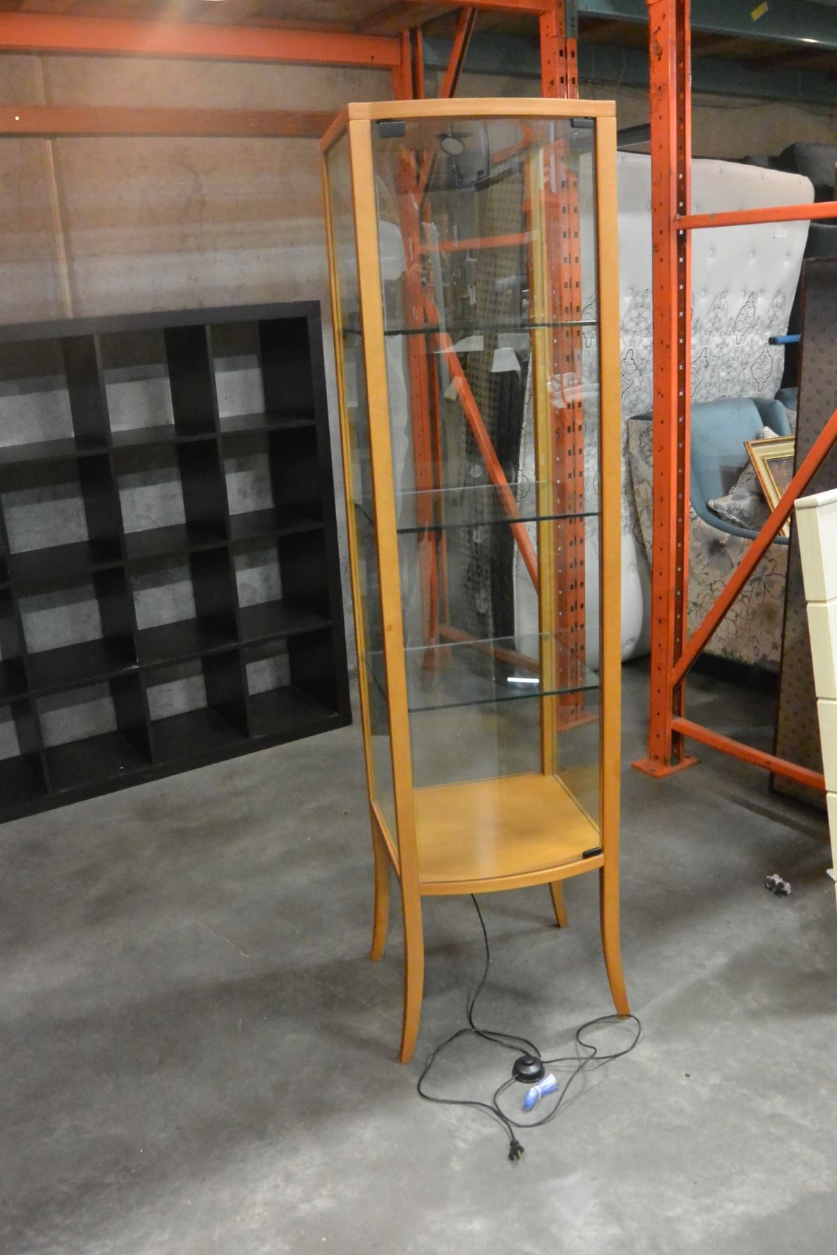MODERN MAPLE BOWED GLASS DISPLAY CABINET