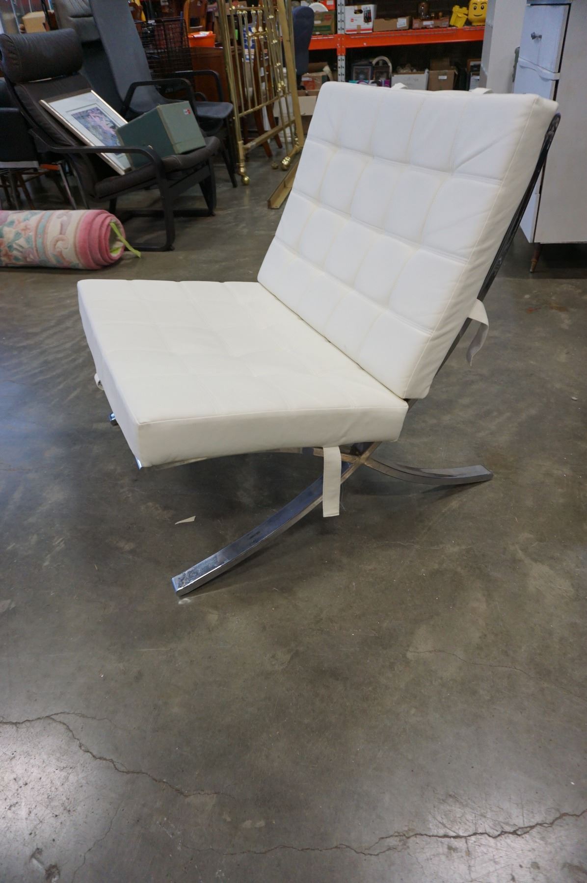 MODERN METAL FRAMED CHAIR W/ LEATHER CUSHIONS