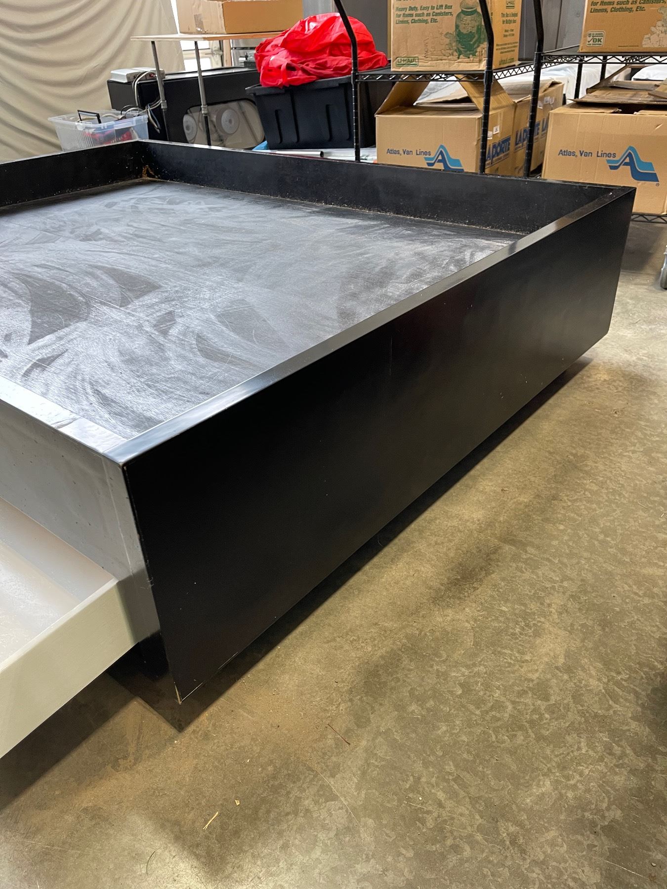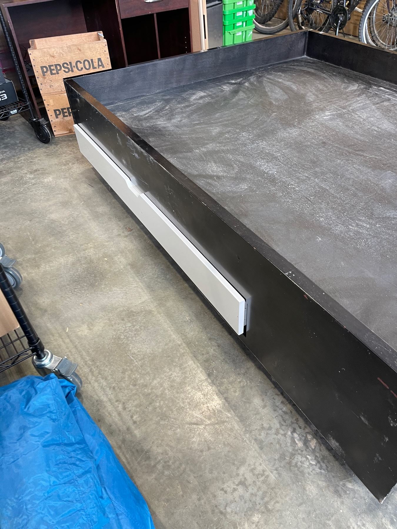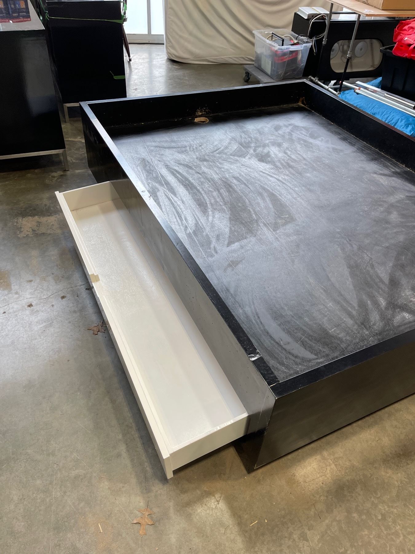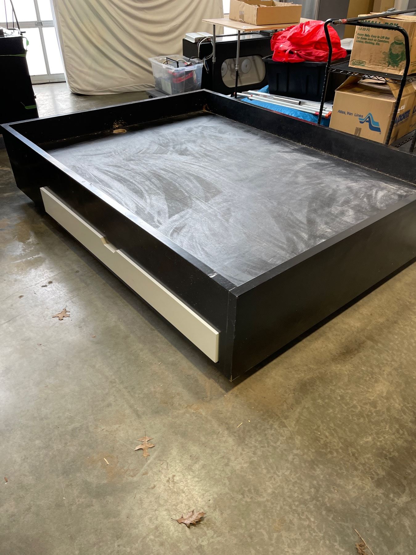 MODERN QUEEN SIZE SOLID WOOD PLATFORM BEDFRAME WITH TWO DRAWERS AND QUEENSIZE MATTRESS AND BOXSPRING,