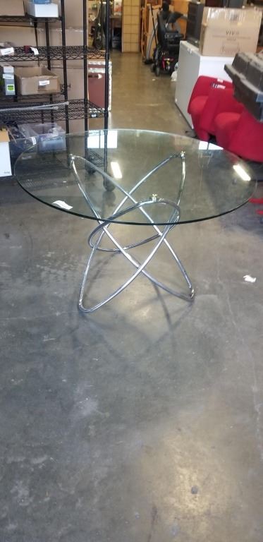 MODERN ROUND CHROME ANMD GLASS TOP DINING TABLE 48 INCH DIAMETER
