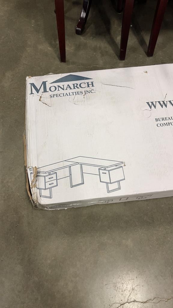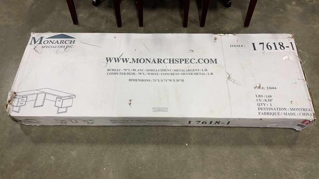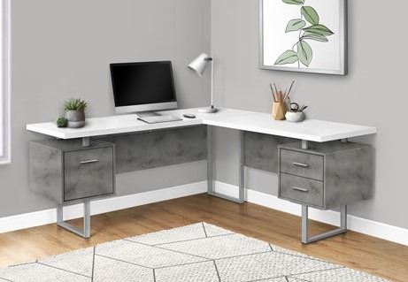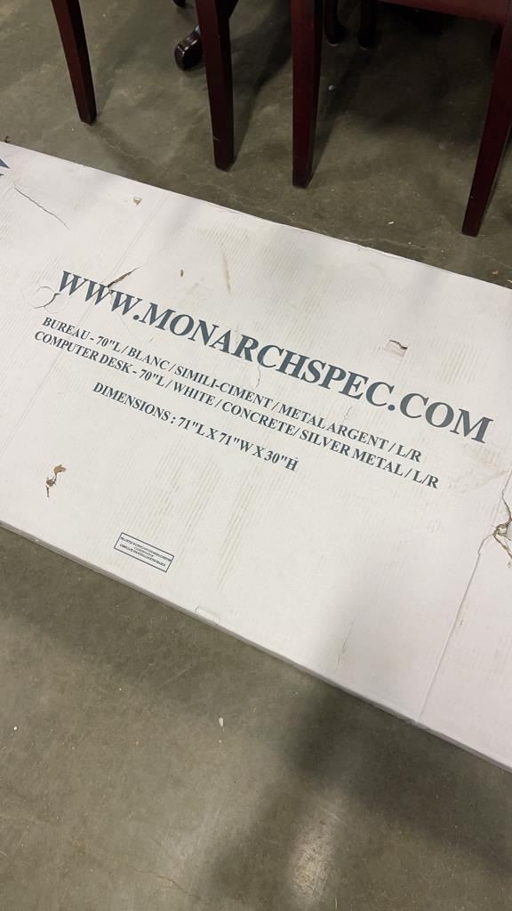 MONARCH 70 INCH DESK - WHITE/CONCRETE/SILVER METAL - RETAIL $853