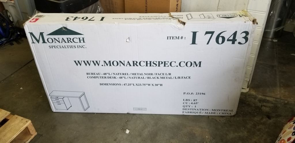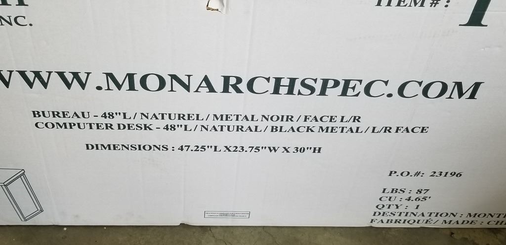 MONARCH FLOATING 47.25W COMPUTER DESK WITH 3 DRAWERS, RETAIL $339