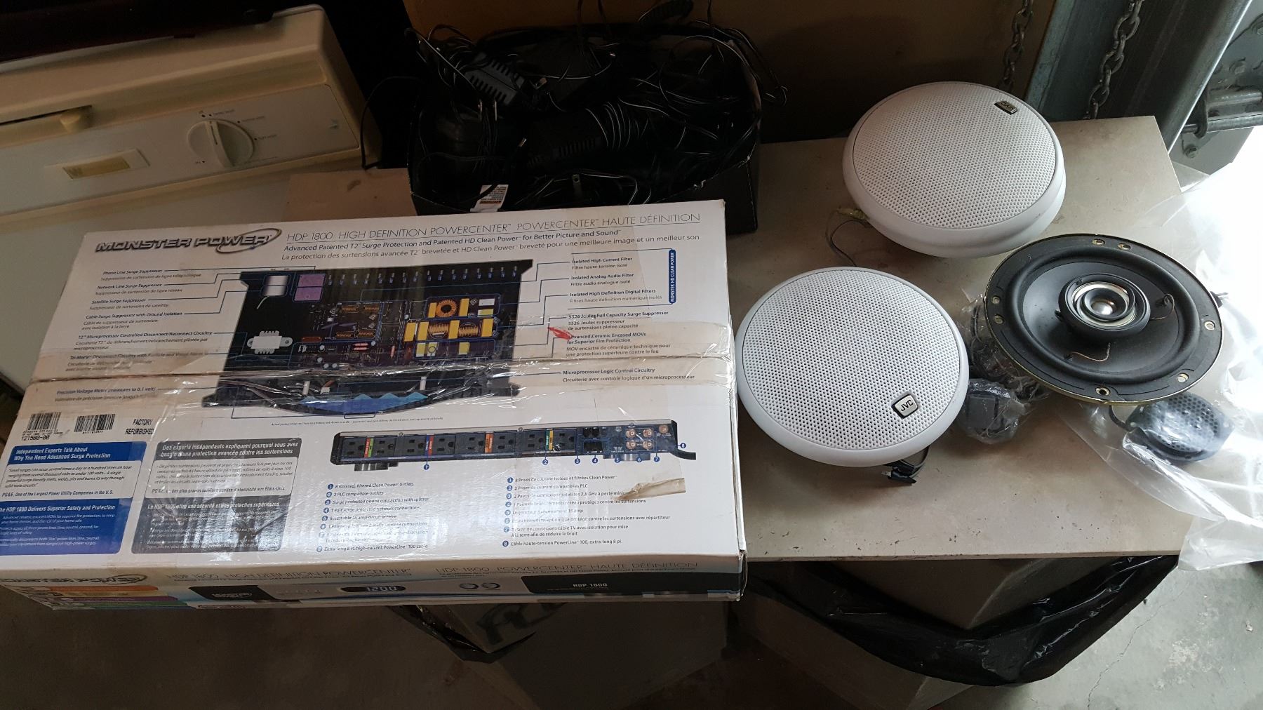 MONSTER POWER BAR, AC ADAPTERS, AND JVC SPEAKERS