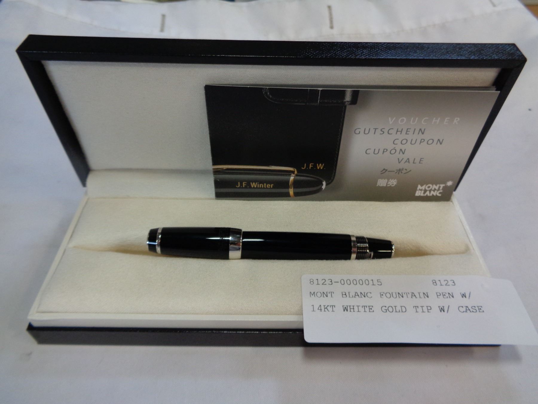 MONT BLANC FOUNTAIN PEN W/ 14KT WHITE GOLD TIP W/ CASE