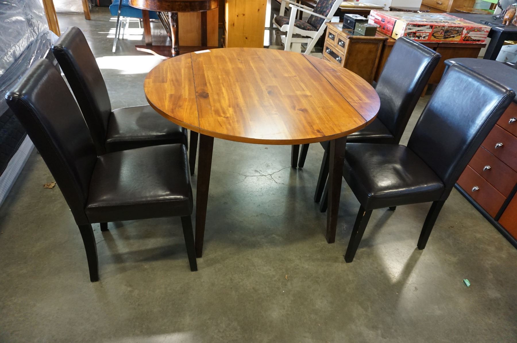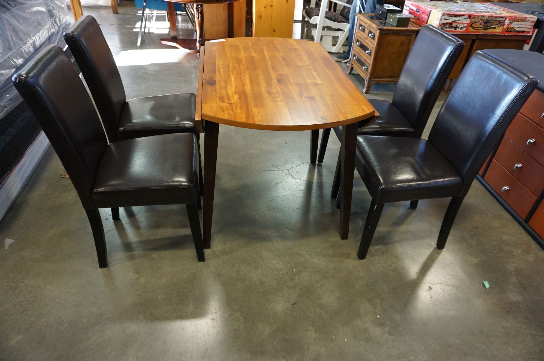 MORDERN DROP LEAF DINING TABLE W/ 4 LEATHER CHAIRS
