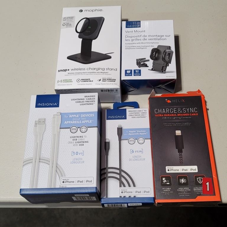 MORPHIE WIRELESS CHARGING STAND, PHONE VENT MOUNT AND APPLE IPHONE CHARGING CORDS