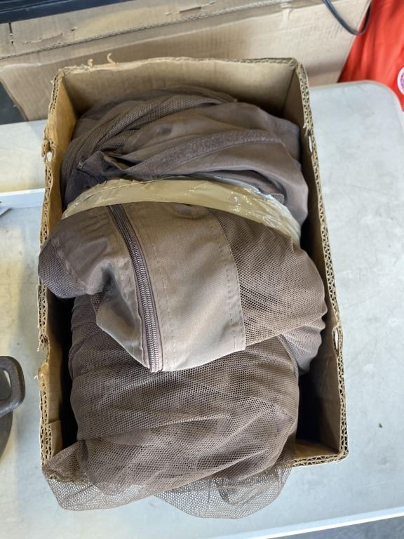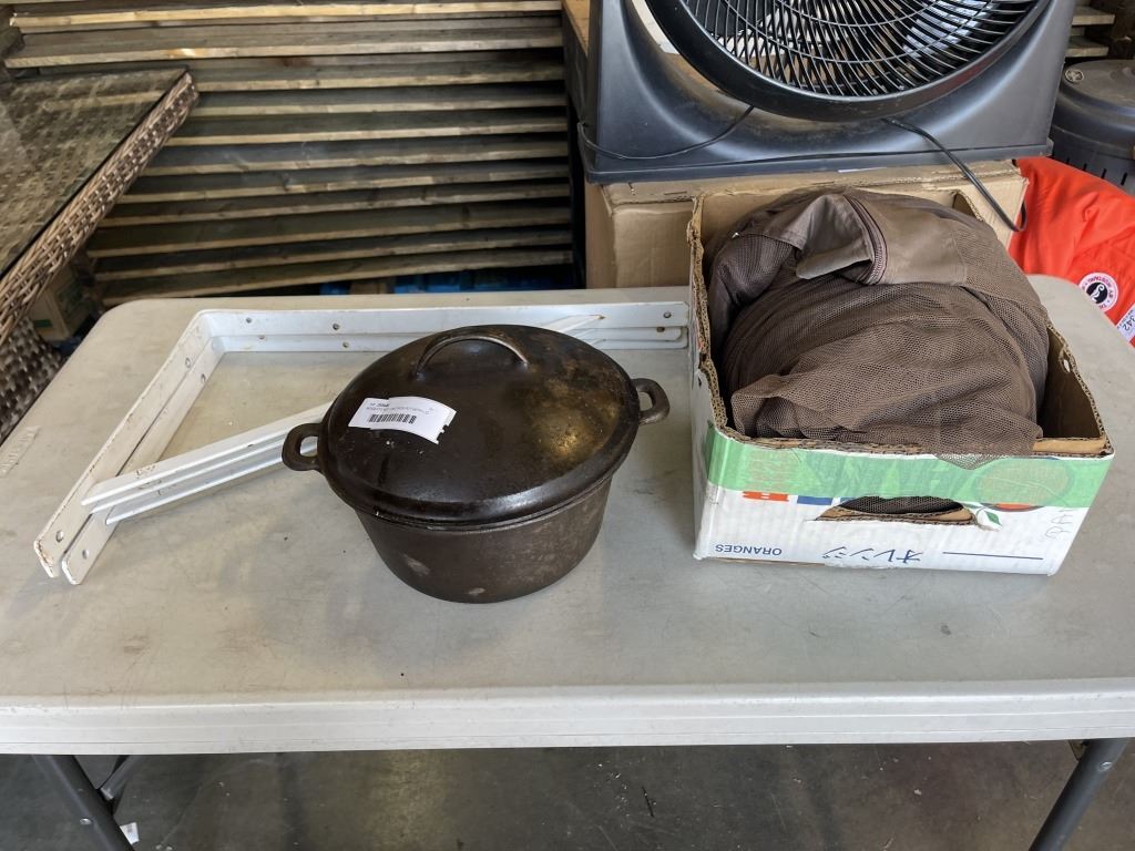 MOSQUITO NET, CAST IRON POT WITH LID AND SHELF BRACKETS