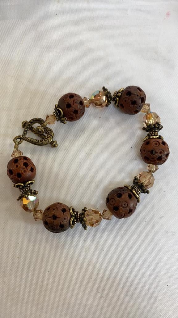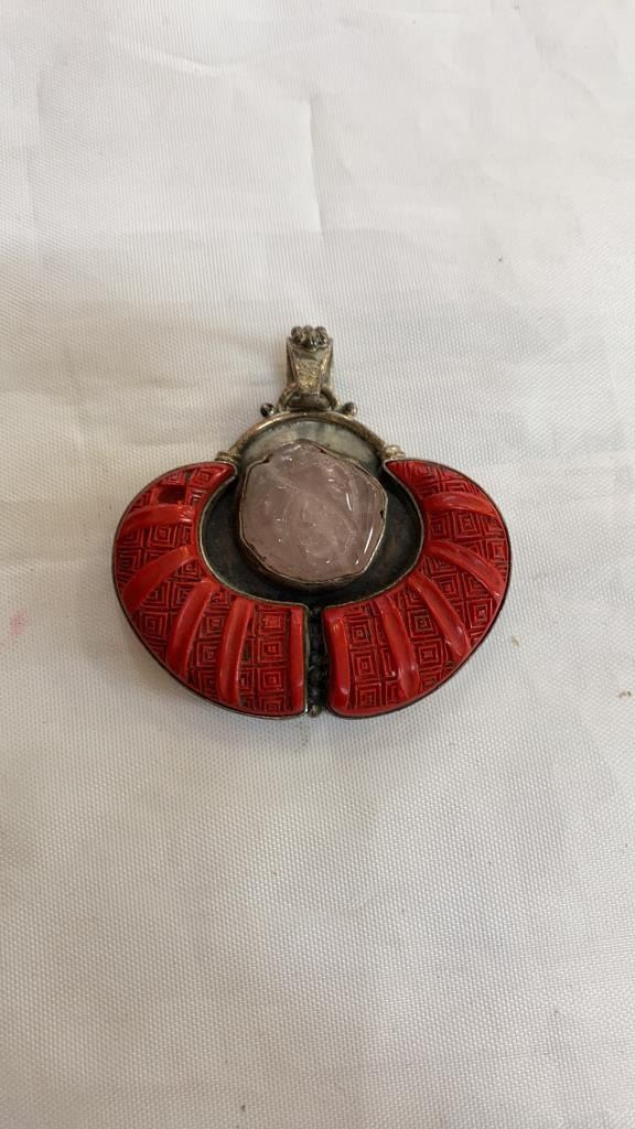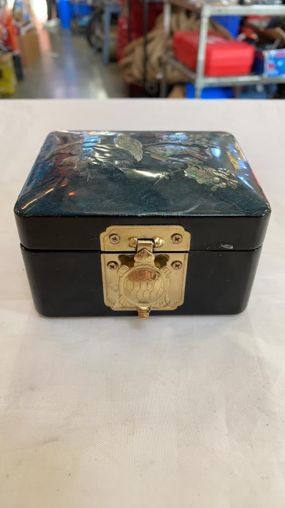 MOTHER OF PEARL JEWELLERY BOX W/ CARVED JEWELLERY AND MINI ORENTIAL DIVIDER