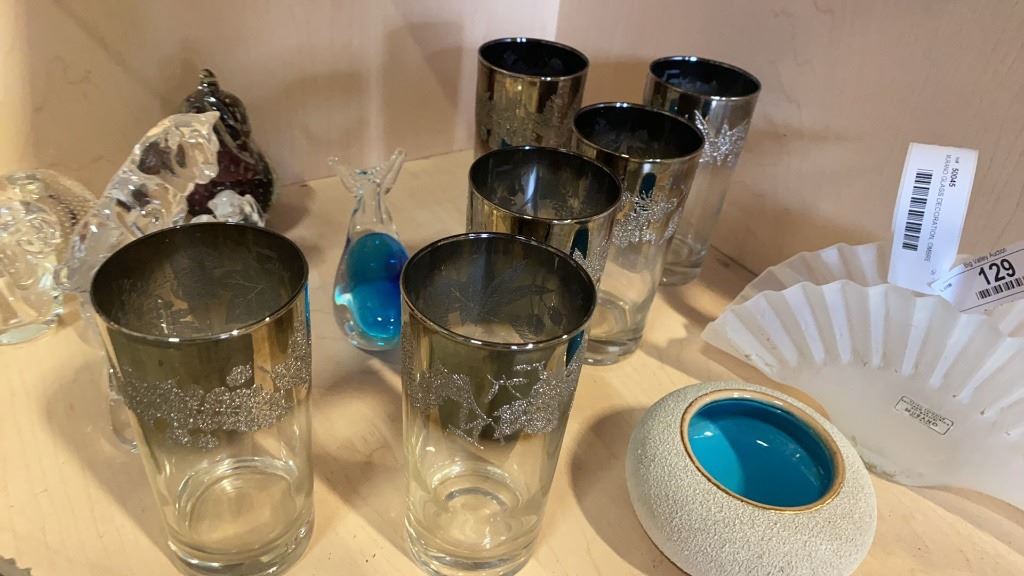 MURANO GLASS DECORATION, OMBRE GLASS HIGHBALL TUMBLERS AND ITALIAN VASE