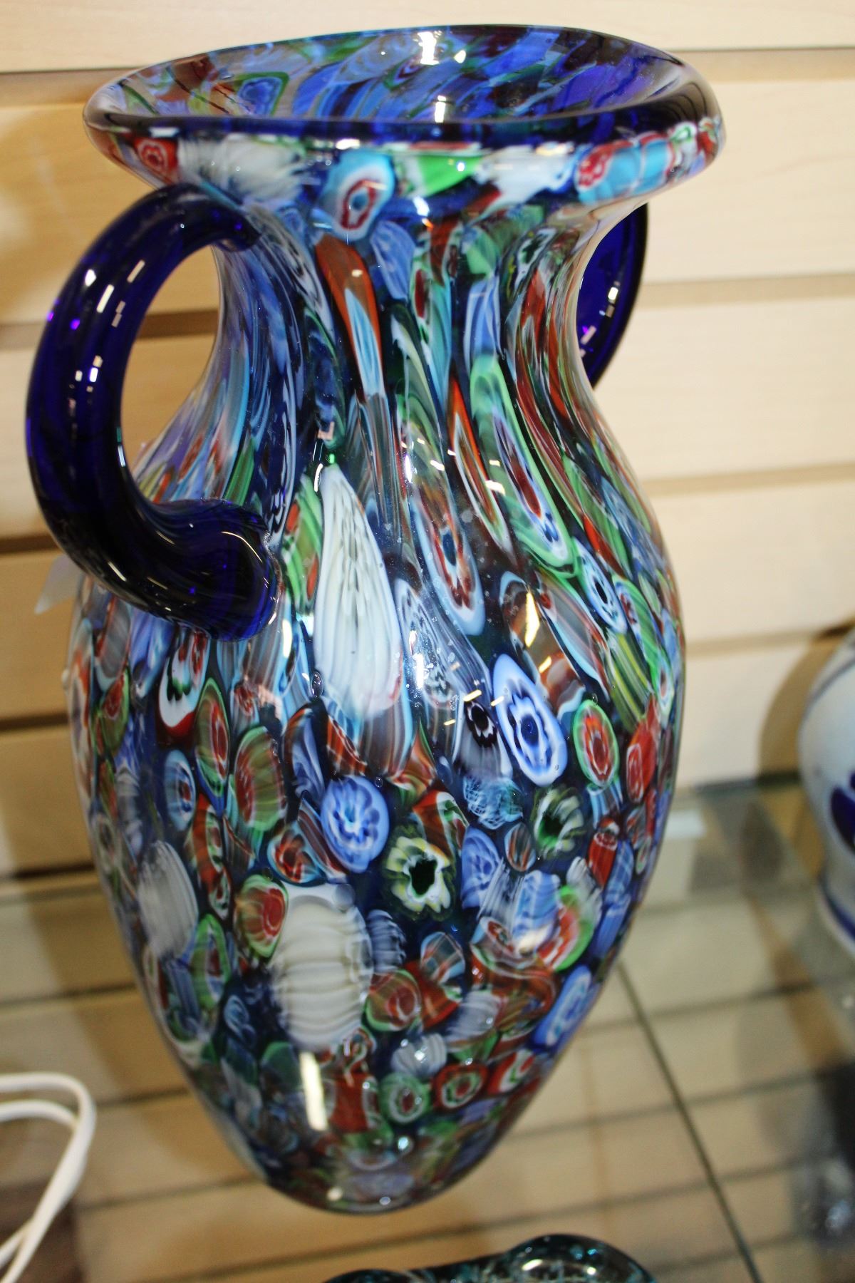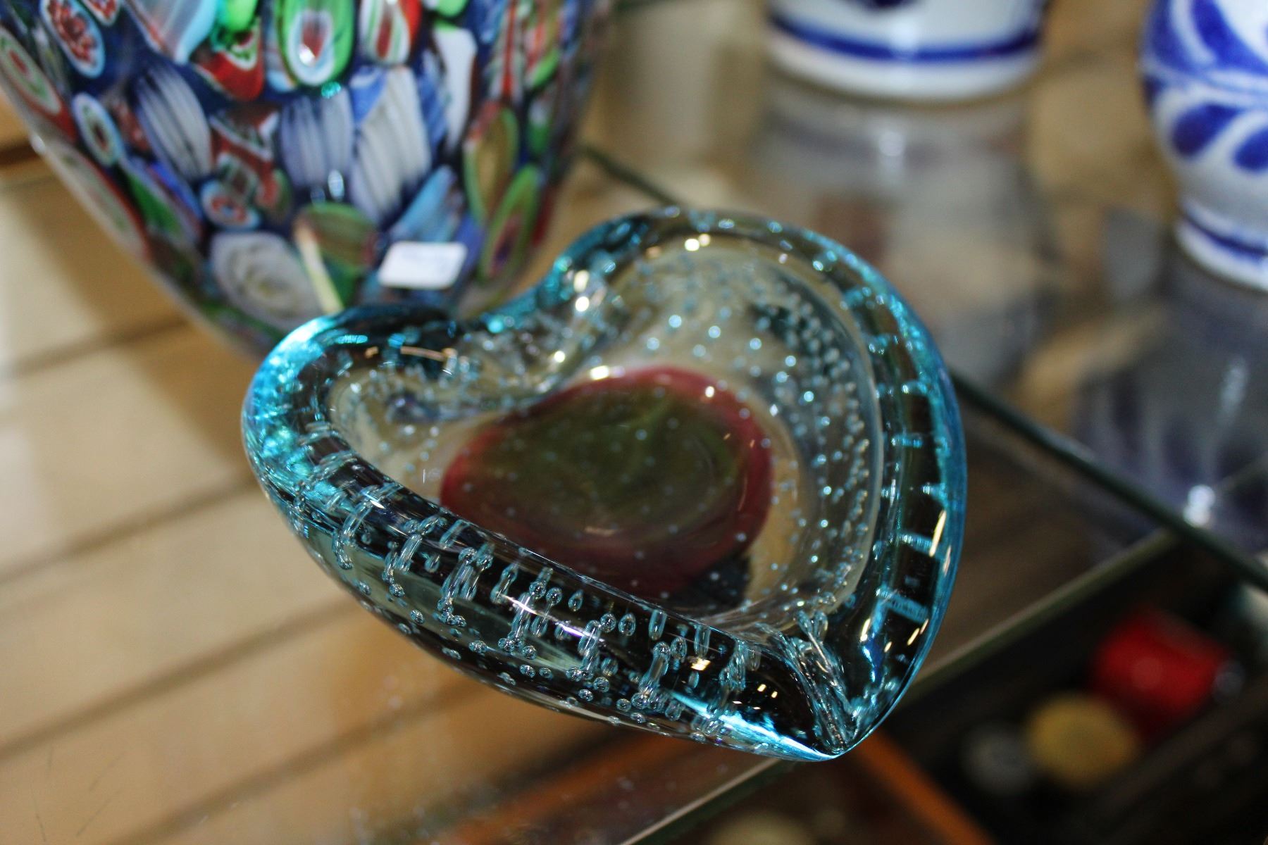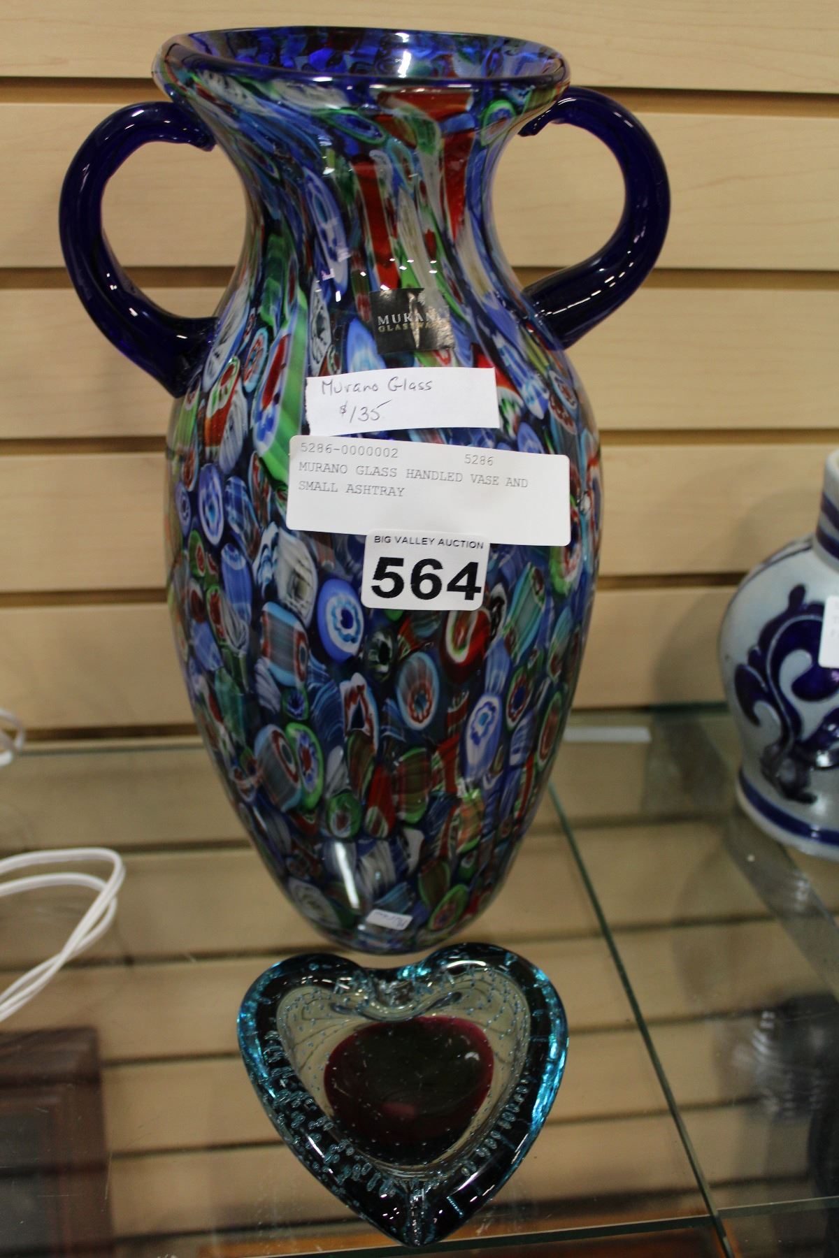 MURANO GLASS HANDLED VASE AND SMALL ASHTRAY