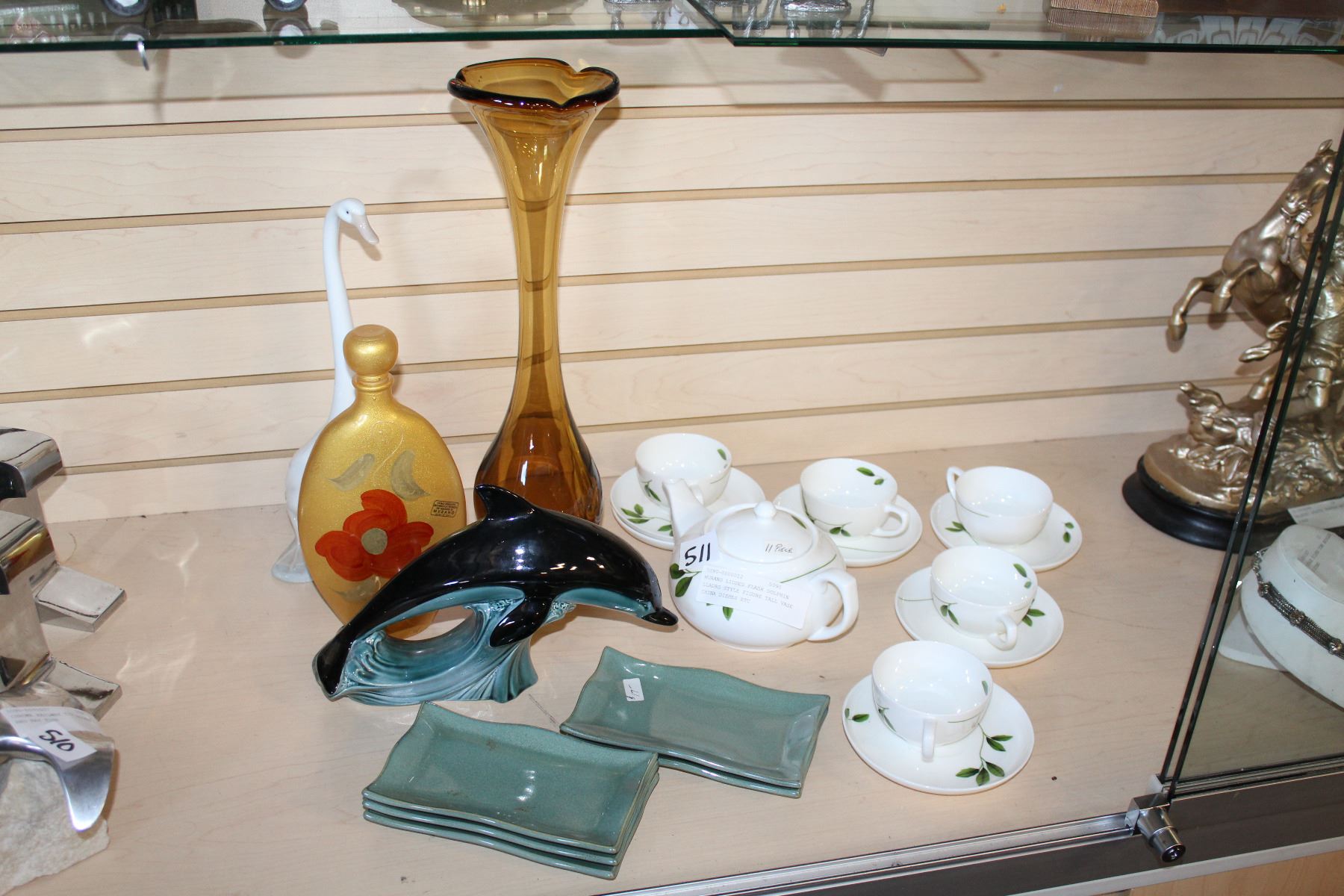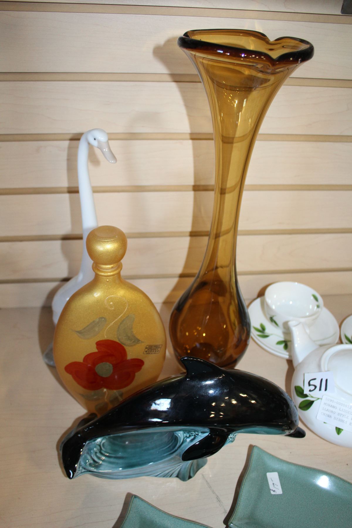 MURANO LIDDED FLASK DOLPHIN LLADRO STYLE FIGURE TALL VASE CHINA DISHES ETC